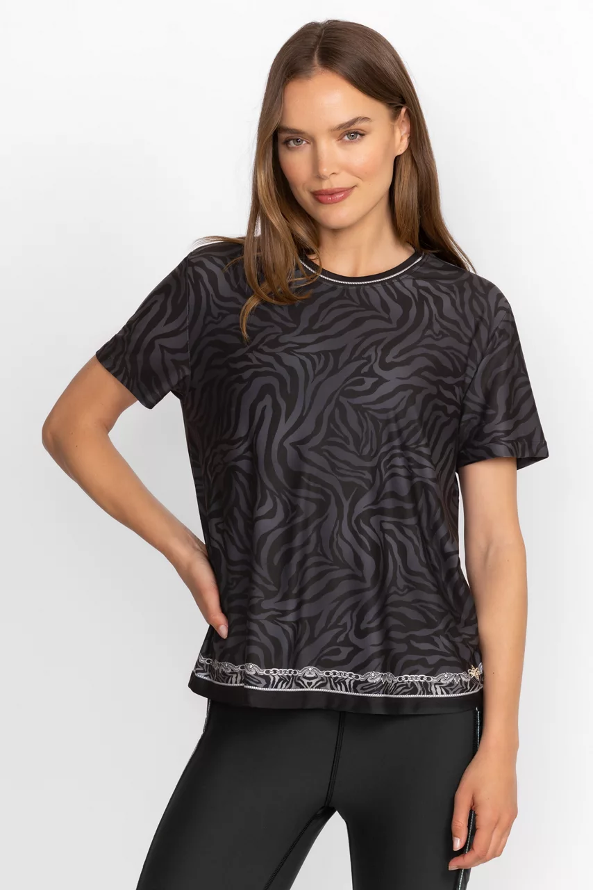 Elevating your activewear, the Bee Active Short Sleeve Crew Neck Tee adds feminine flair to your workout or everyday looks. Crafted from an easy-care fabric, this tee features a rounded neckline and straight-cut hem. Pair with the Bee Active Leggings and an easy zip-up hoodie for a comfortable, casual look rich in style.