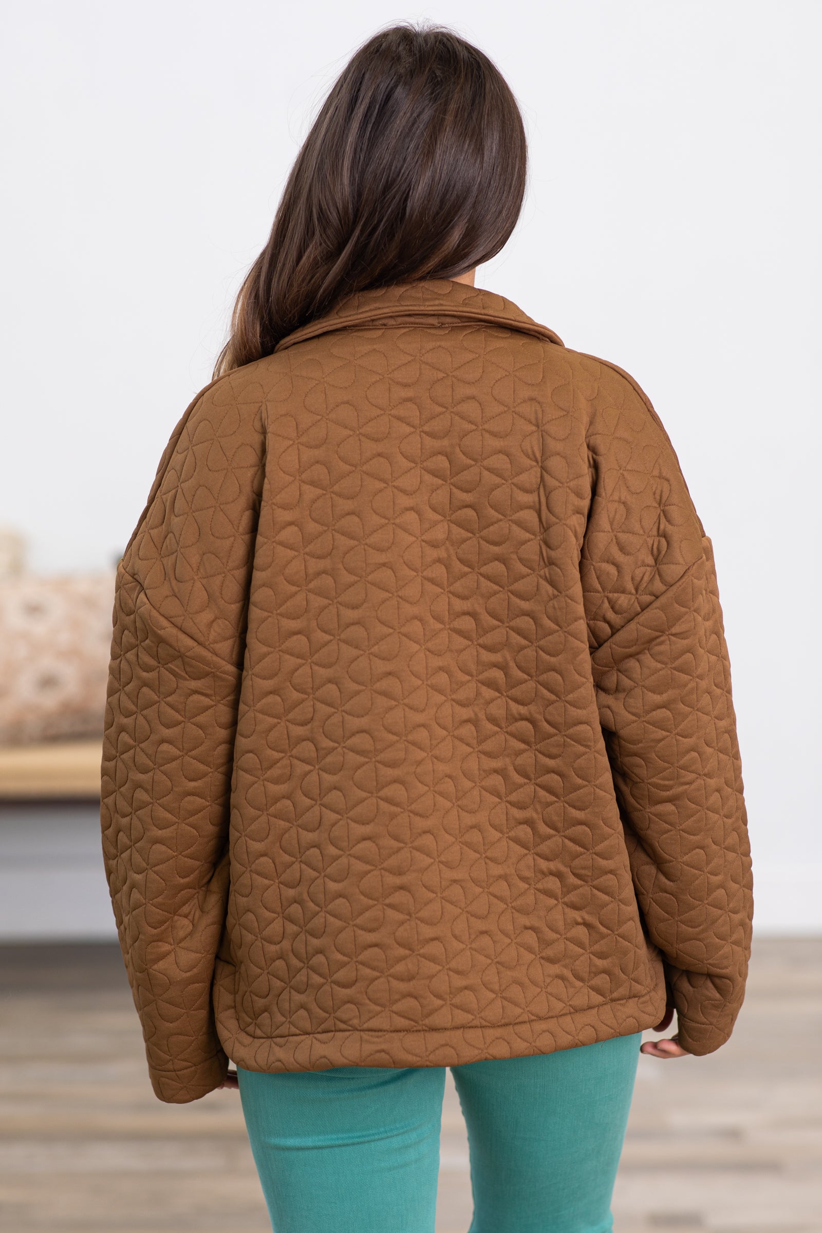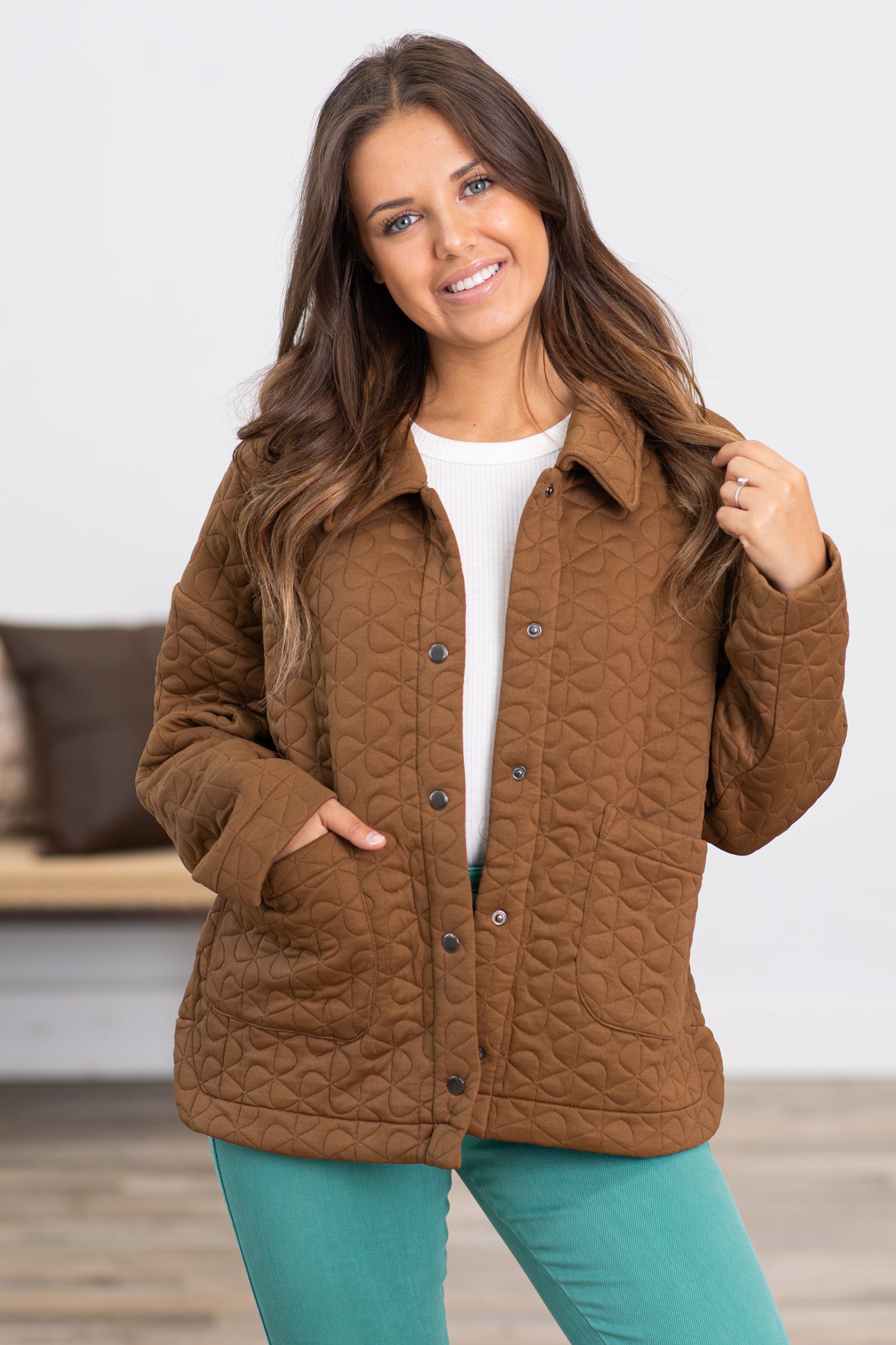 Brown Quilted Snap Front Jacket