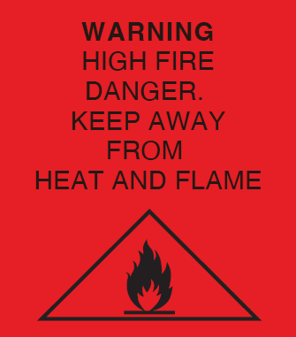 HIGH FIRE DANGER KEEP AWAY FROM HEAT AND FLAME