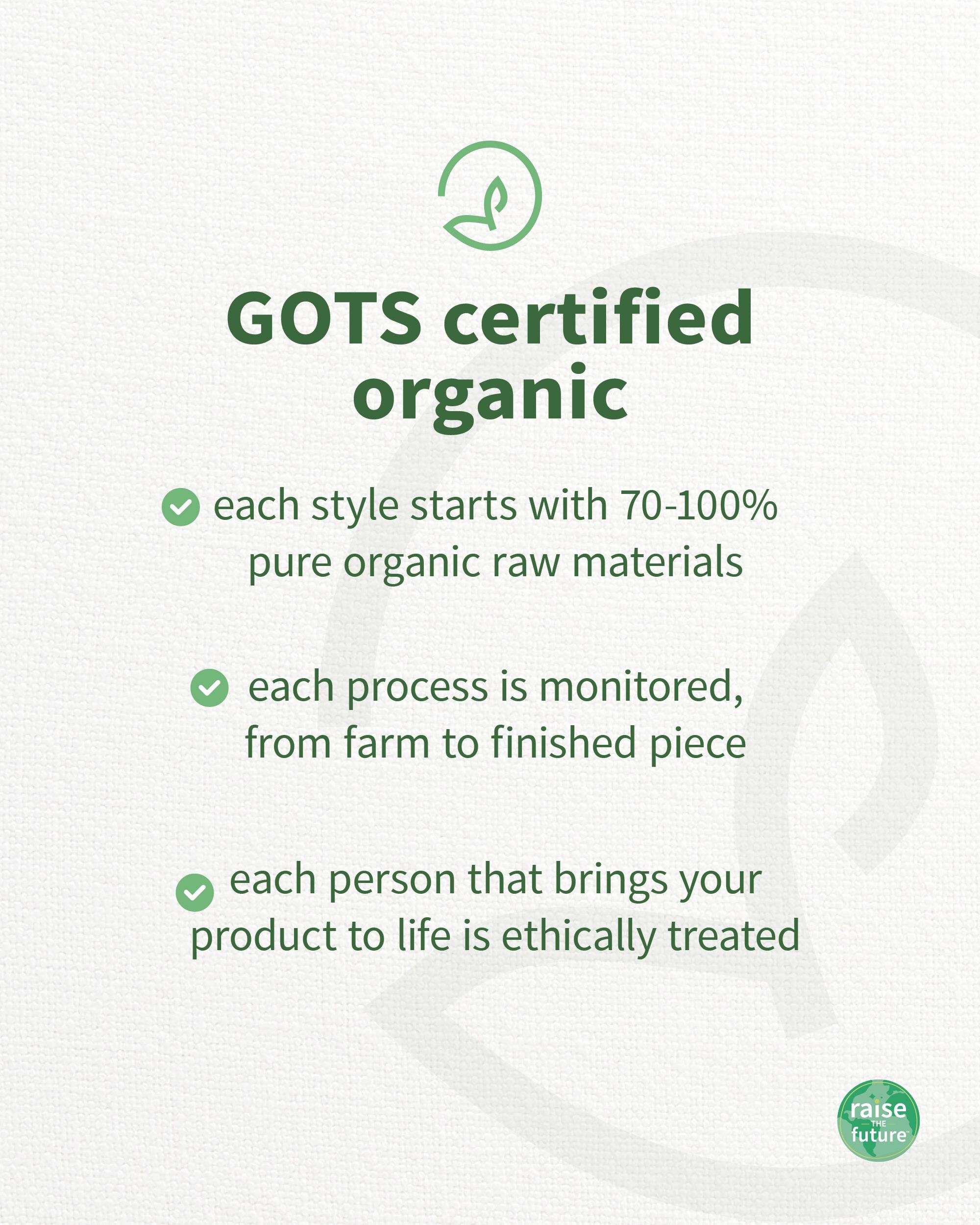 Certified organic by the Global Organic Textile Standard (GOTS)