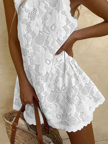 Plain Lace Jacquard Sleeveless Casual Tunic Dress
