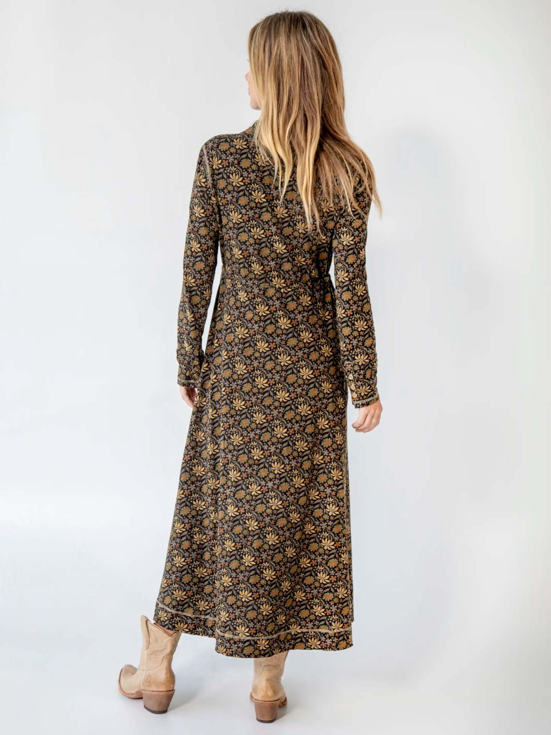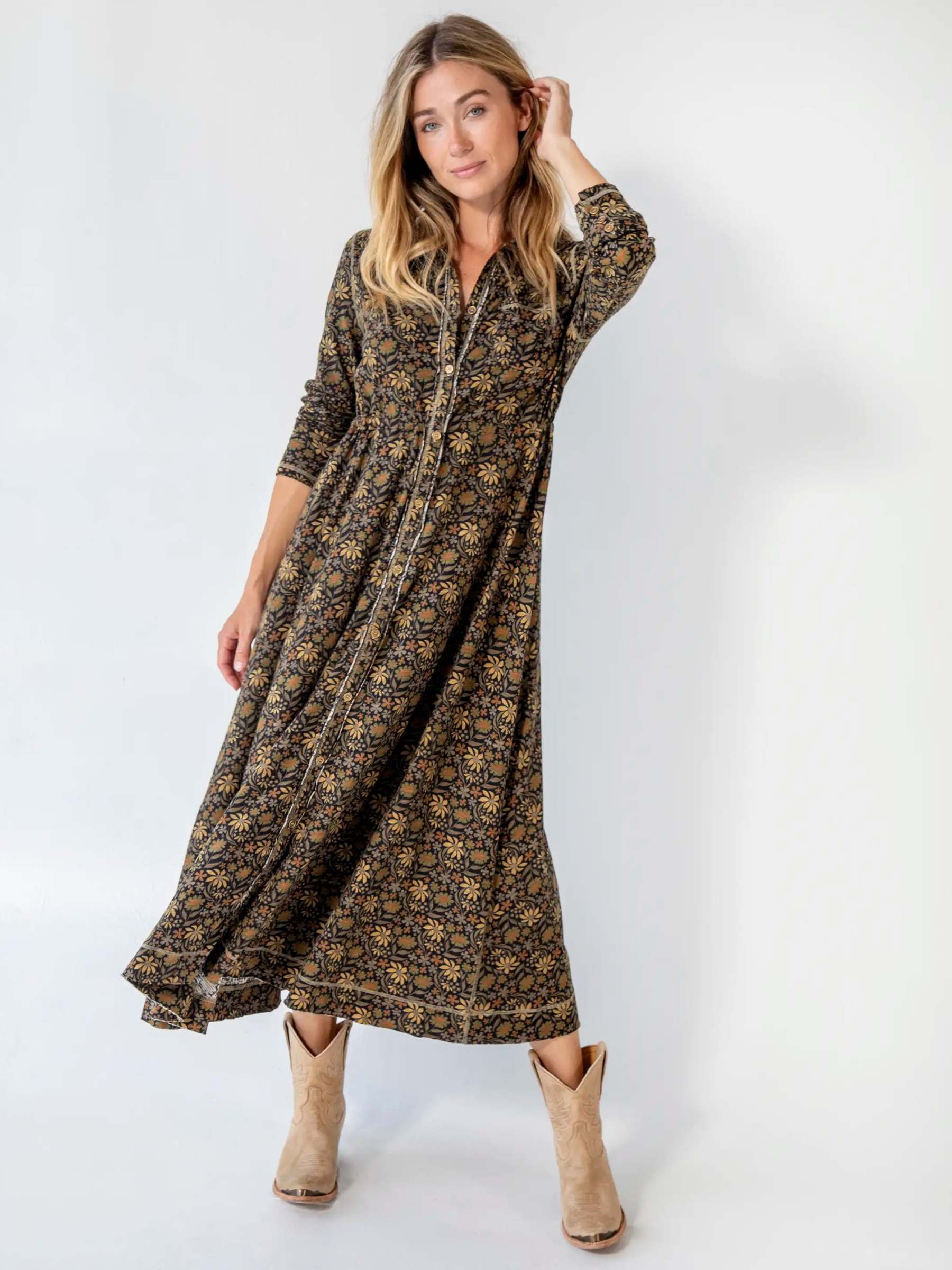 Christa Knit Cotton Maxi Dress - Black Tan Daisies