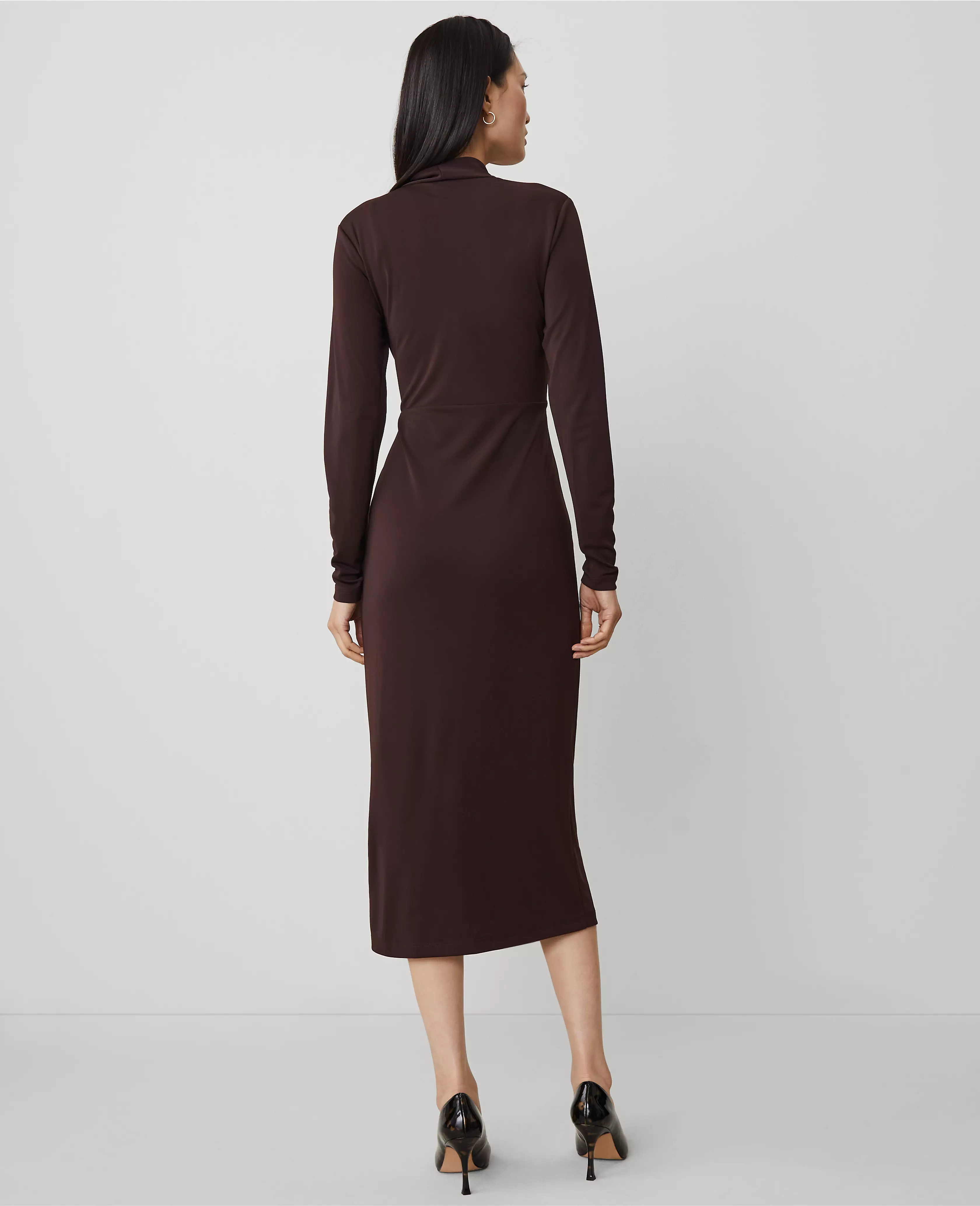 Cinched at the waist for a flattering twist, our wrap-style midi styles a long and lean silhouette. Crossover V-neck. Long sleeves.