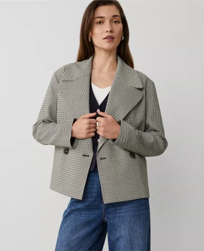 Houndstooth Short Swing Trench Jacket