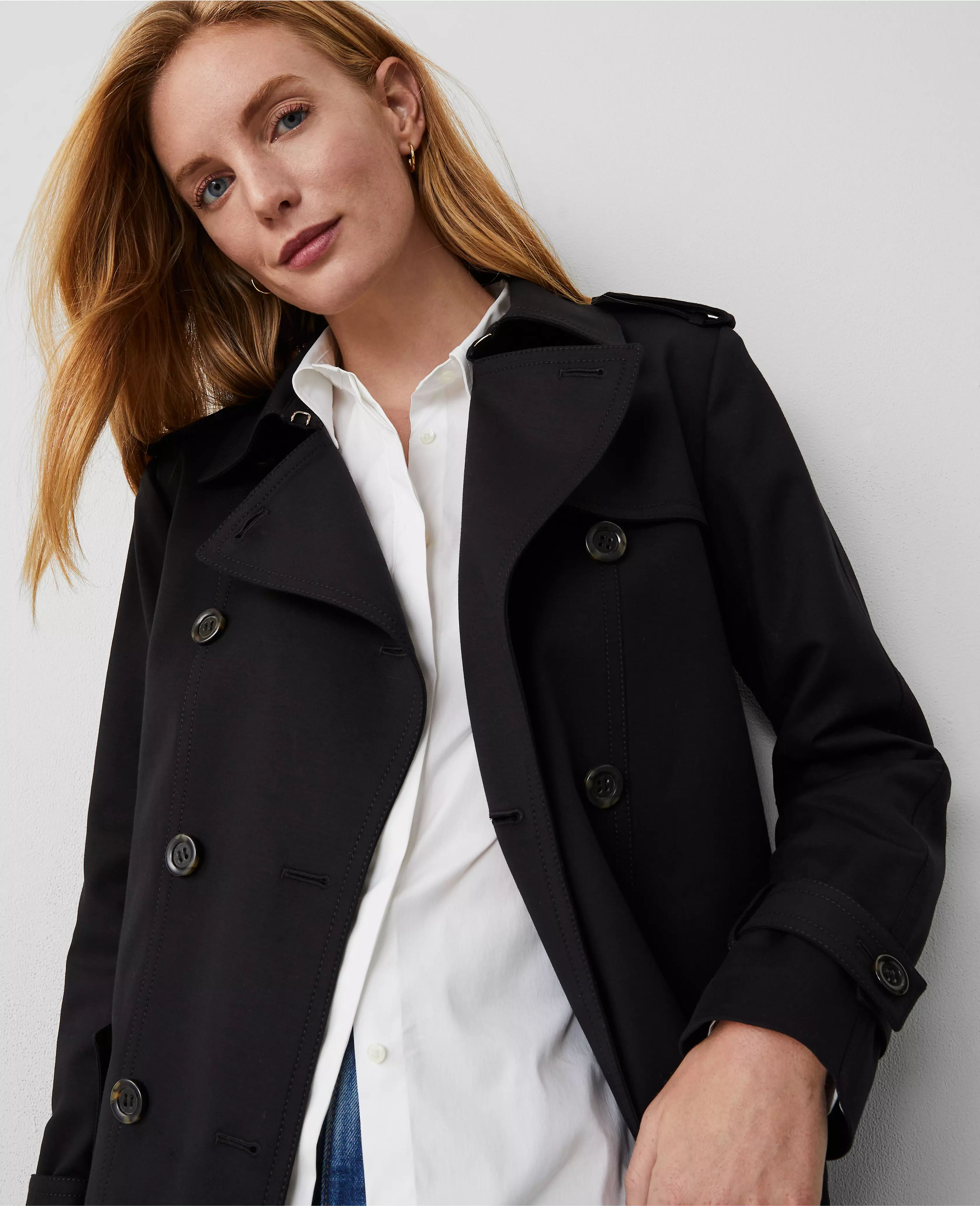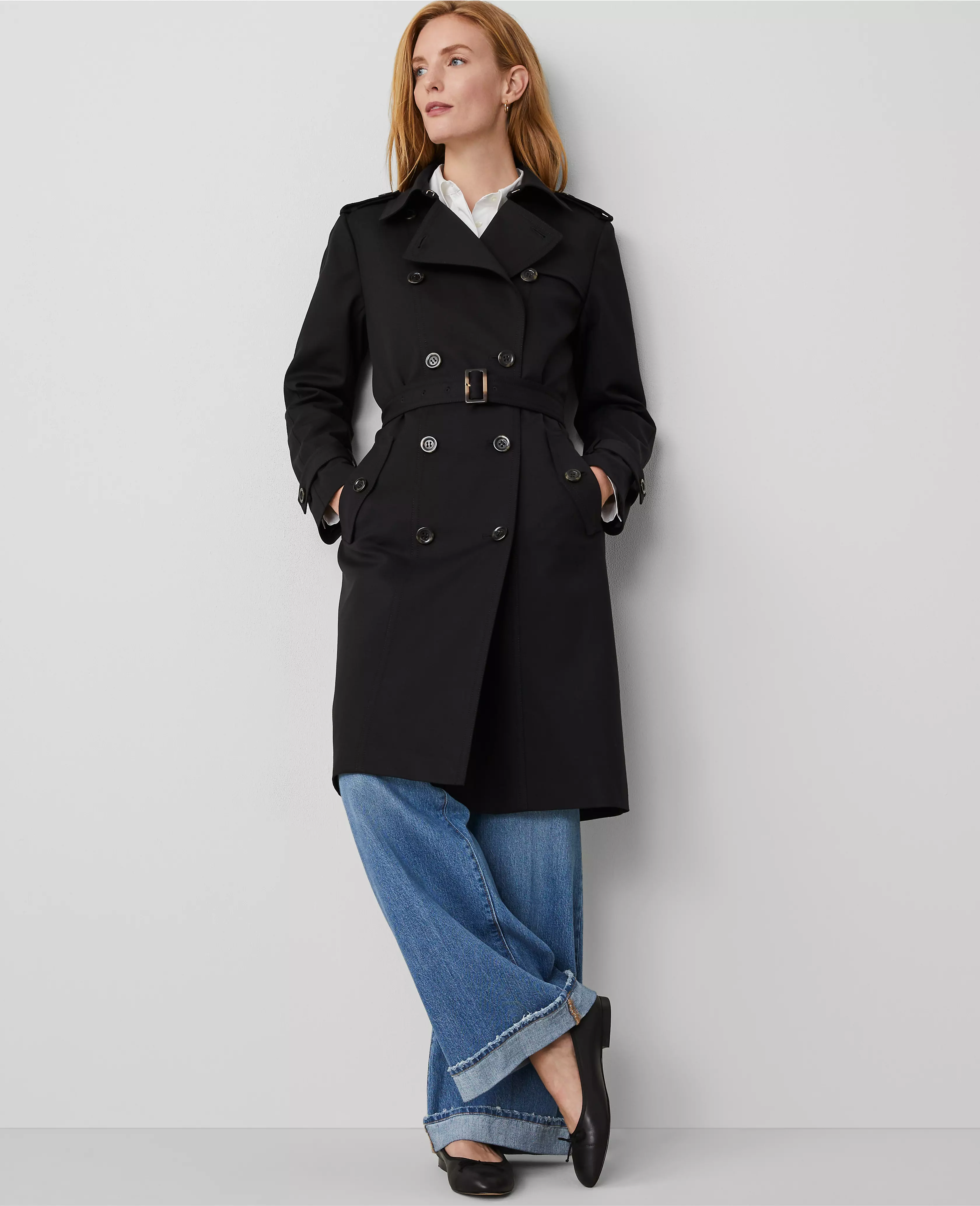 With tailored touches and a belted silhouette, our fitted trench coat has you covered - rain or shine. Notched lapel. Long sleeves with button tabs. Double breasted button front. Front gun flap. Button shoulder epaulettes. Belt loops. Self tie buckle belt. Angled front flap button pockets. Back vent. Lined.