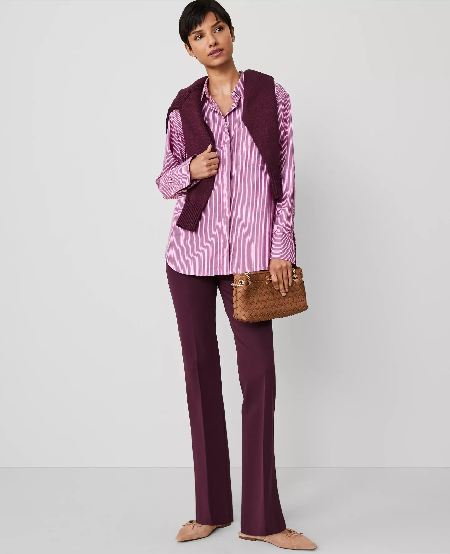 In Alberta stretch cotton, these flared pants are the perfect balance of modern styling and timeless detail. Elasticized waist. Hidden side zipper with hook-and-eye closure.