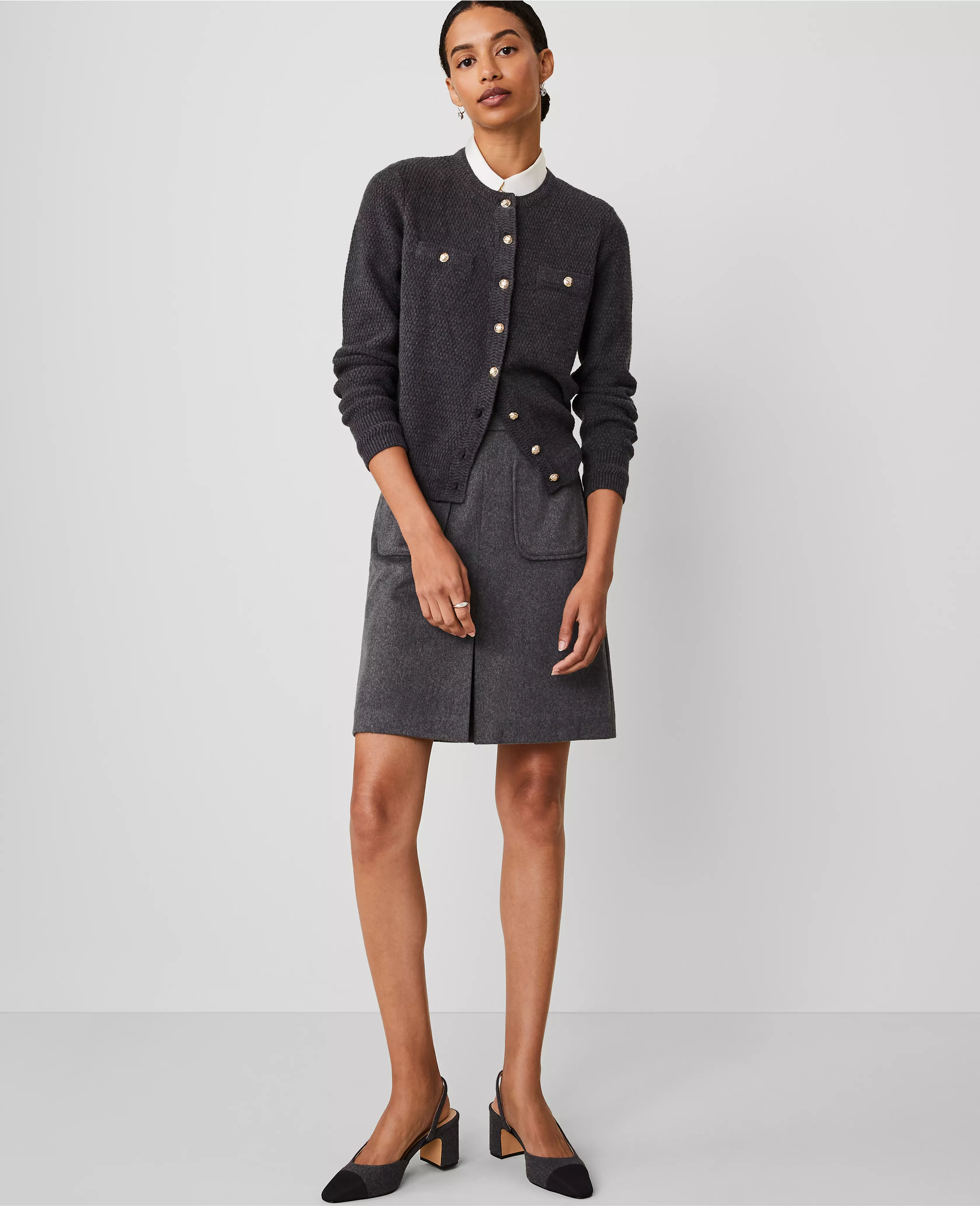 Cut with a front slit for extra ease of movement, our patch pocket skirt is a style standout. Front patch pockets. Front slit. Hidden back zipper with hook-and-eye closure. Lined.