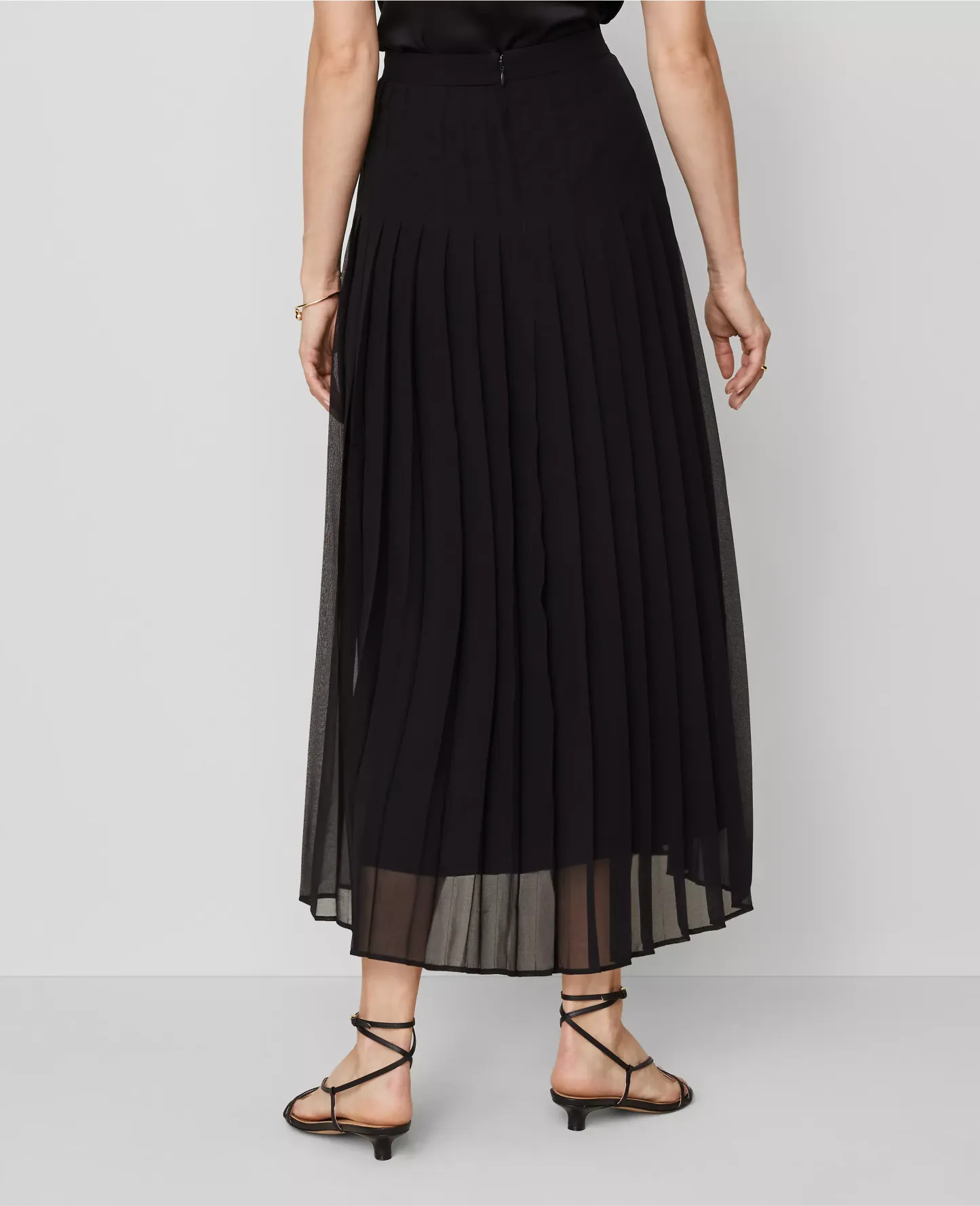 Sharp pleats give this fluid maxi skirt beautiful texture and movement. Hidden back zipper with hook-and-eye closure. Lined.