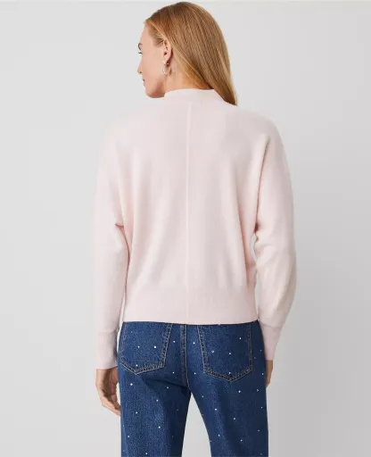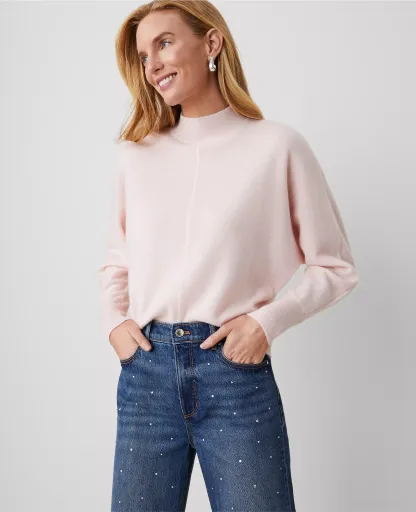 This refined cashmere sweater flatters with relaxed dolman sleeves. Mock neck. Long dolman sleeves. Crew neck. Ribbed neckline, cuffs and hem.