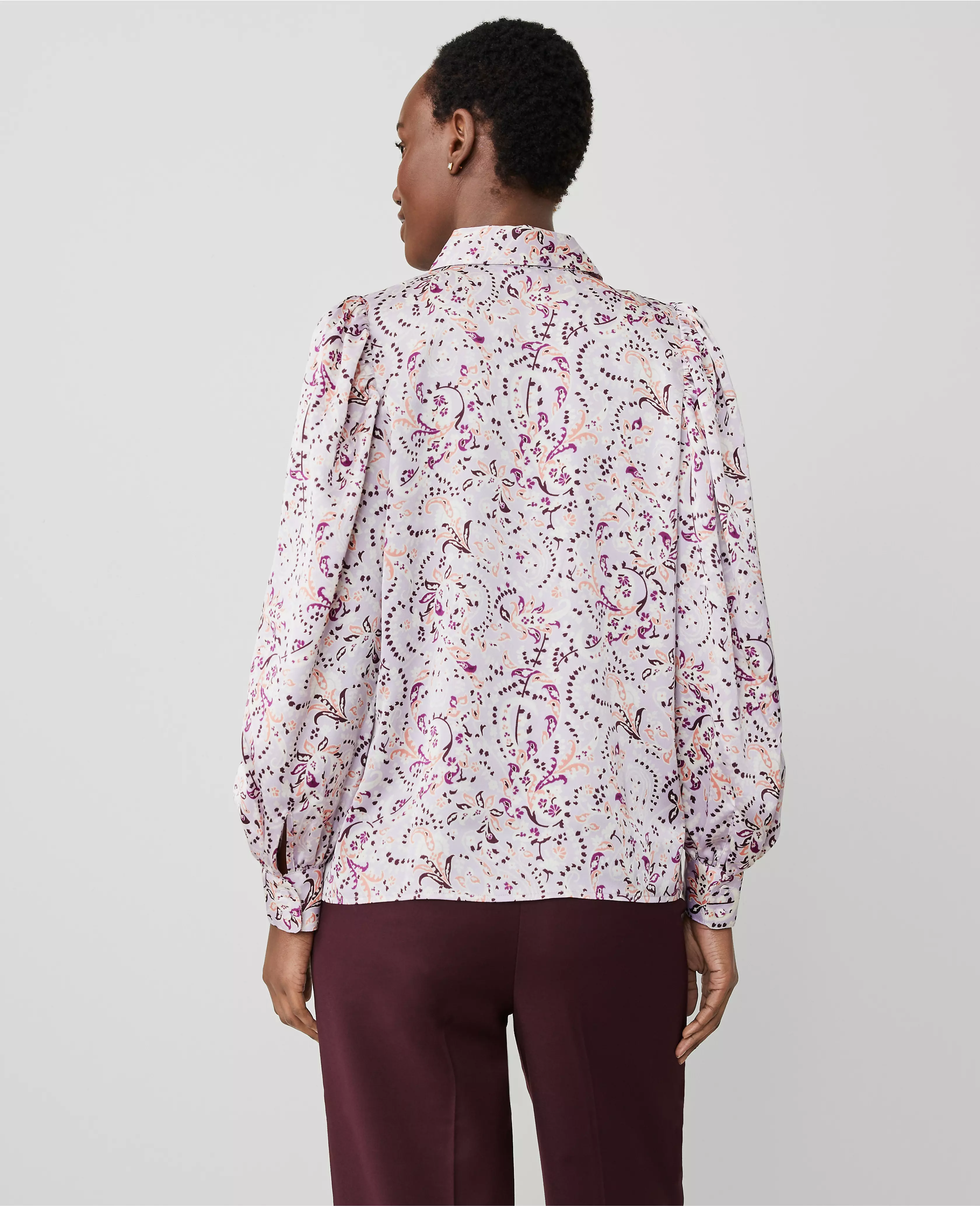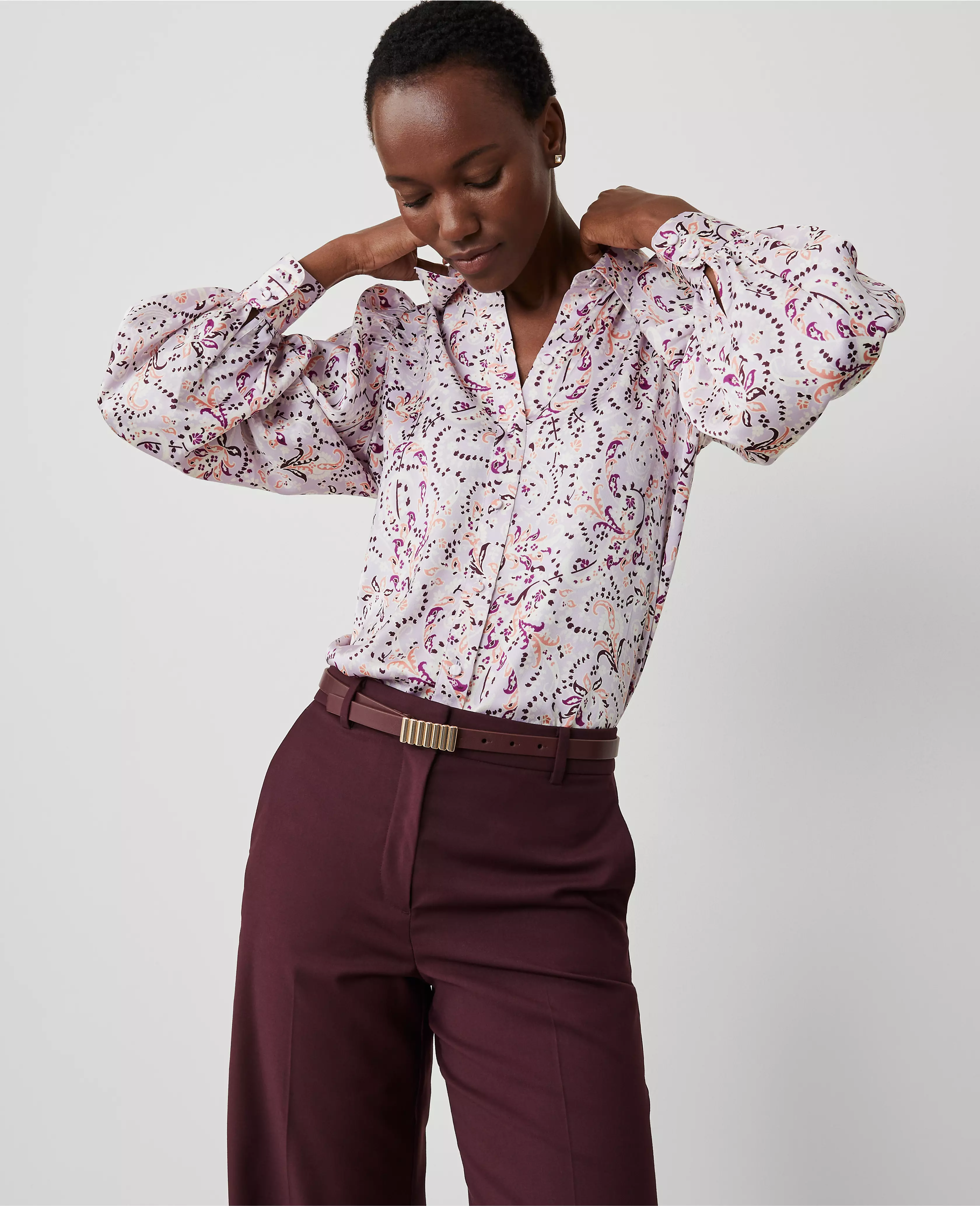 Puff sleeves play up the volume (and style factor) of this have-to-have collared button front shirt. Point collar. Long sleeves with shirred sleeve caps and button cuffs. Button front.
