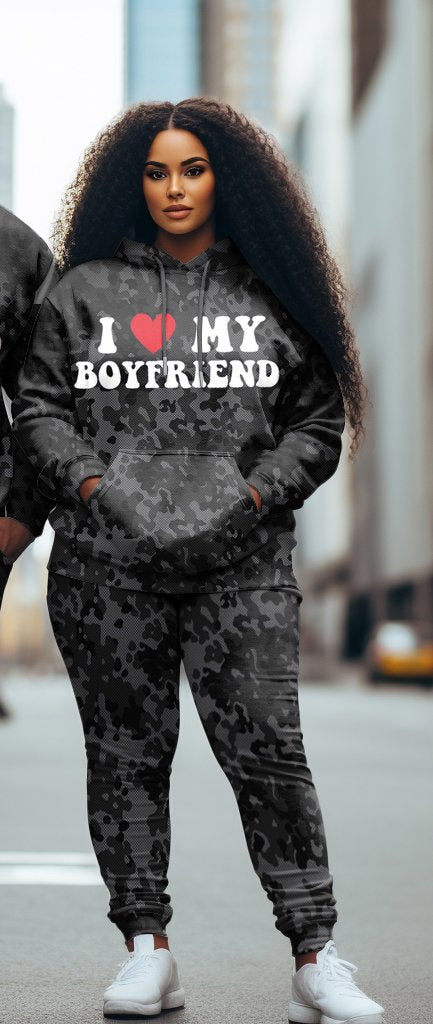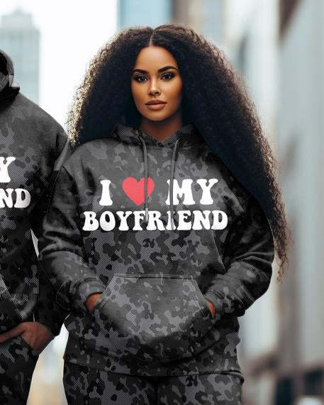 Couple Outfit Plus Size I Love My Boyfriend/Girlfriend Funny Text Hoodie Set