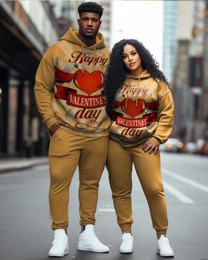 Couple Plus Size Casual Couple Outfit Happy Valentine's Day Love Heart Hoodie Set