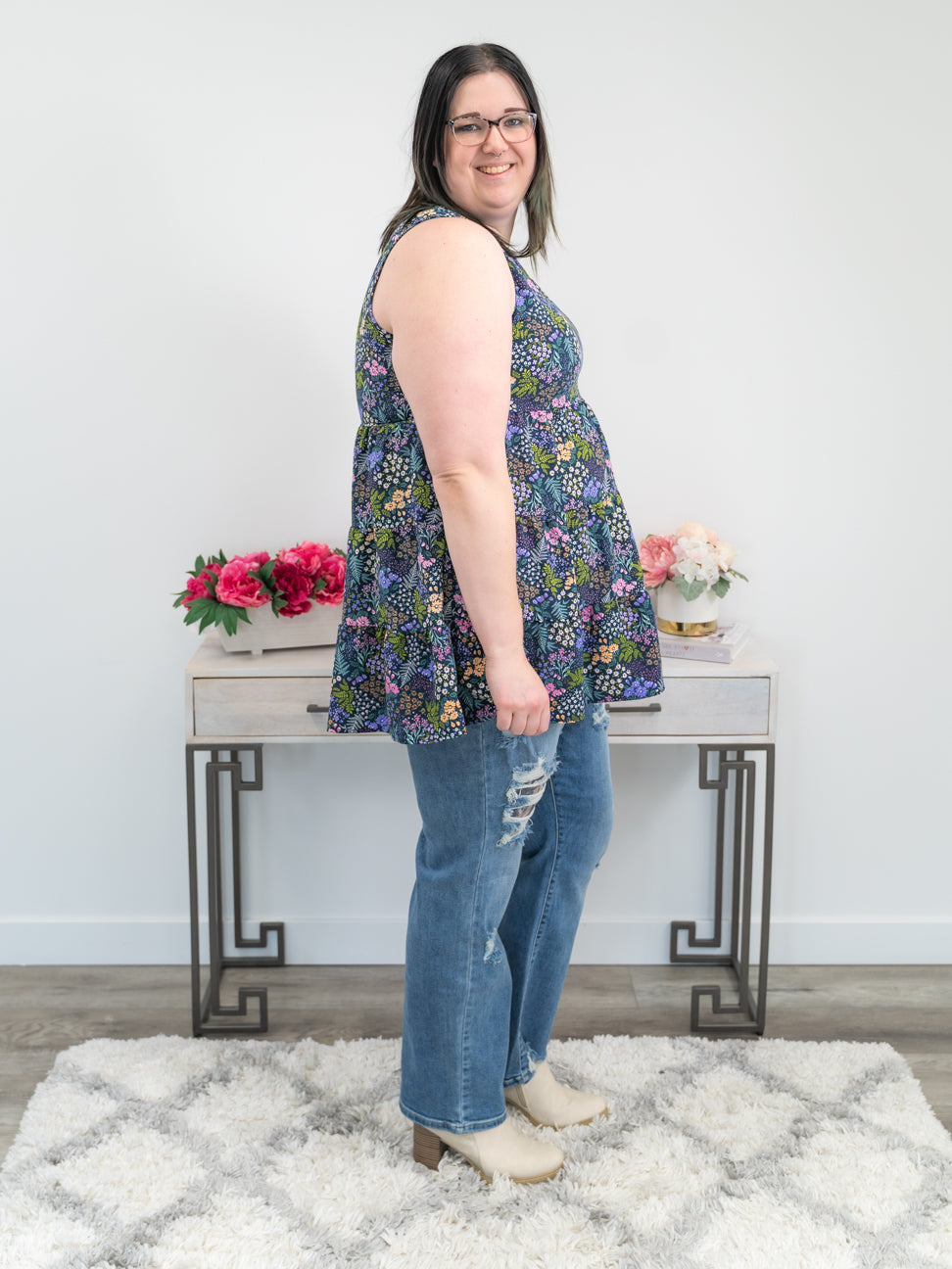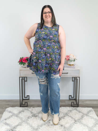 Show your style some courage with this floral tiered tank! With its round neck, sleeveless silhouette and keyhole back with button closure, you're sure to have all eyes on you as you make a statement with its unique tiers. So go on, take the plunge!