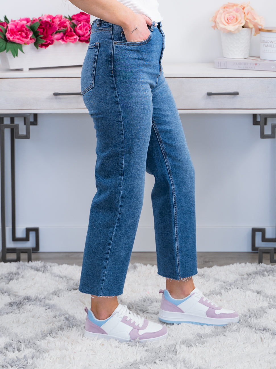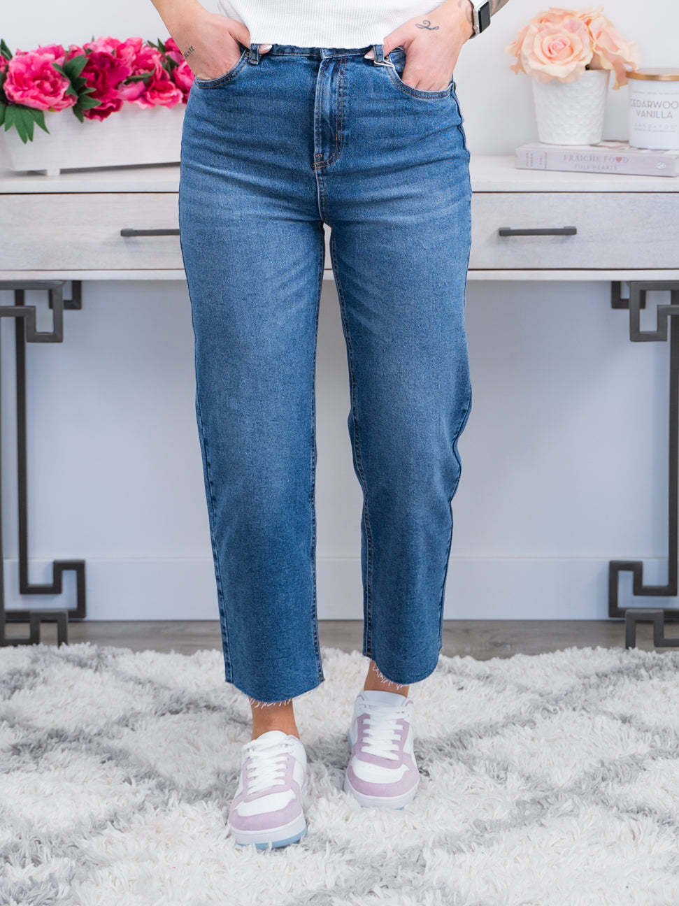 The Dylan High Rise Jean feature a flattering high waist, cropped straight leg and unfinished hems! These comfortable jeans pair perfectly with a tee and sneakers for an casual easy everyday look!