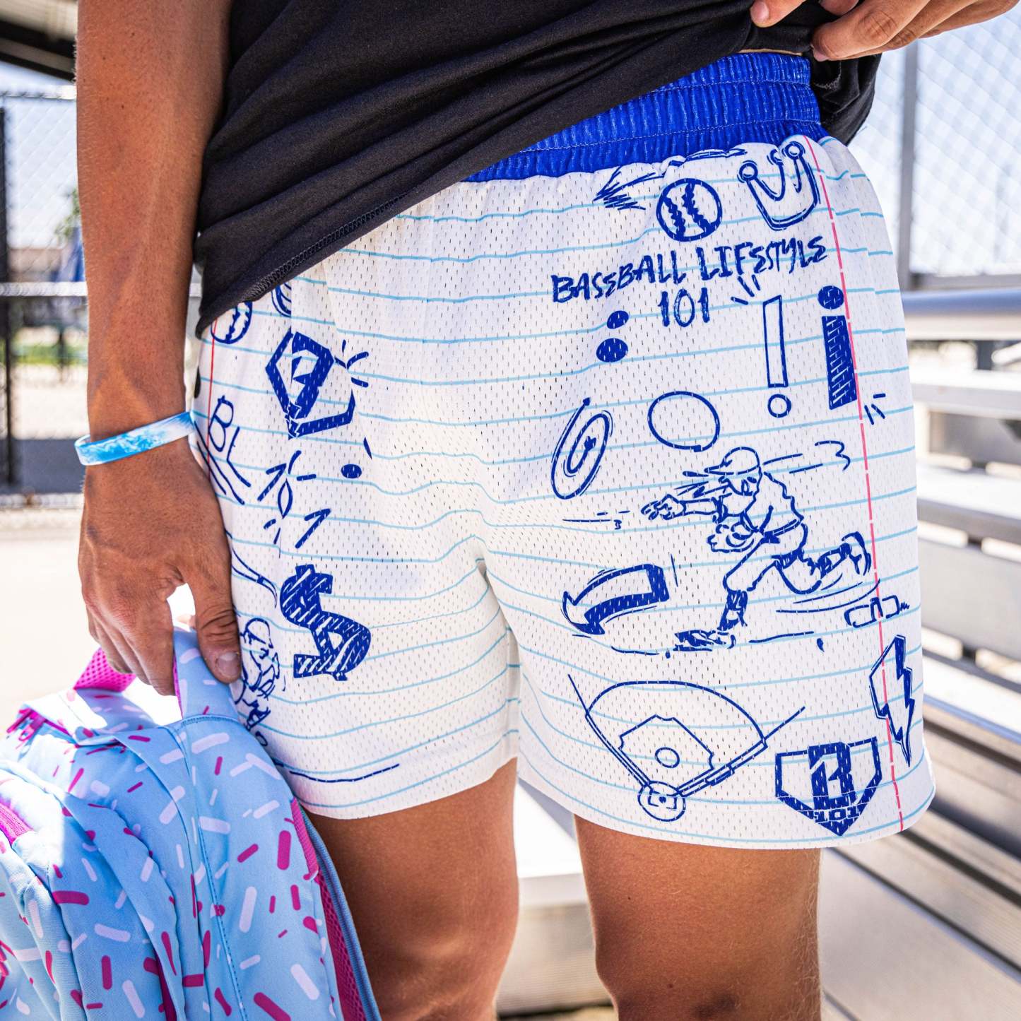 These shorts have a vibrant doodle print and a lightweight mesh fabric, and offer a dynamic fusion of fashion and function. Whether you're hustling on the diamond or chilling with your crew, these shorts deliver a winning combination of standout design and all-day wearability.
