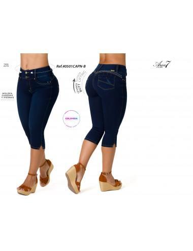 Double Button Mid Waist Capris Jeans
