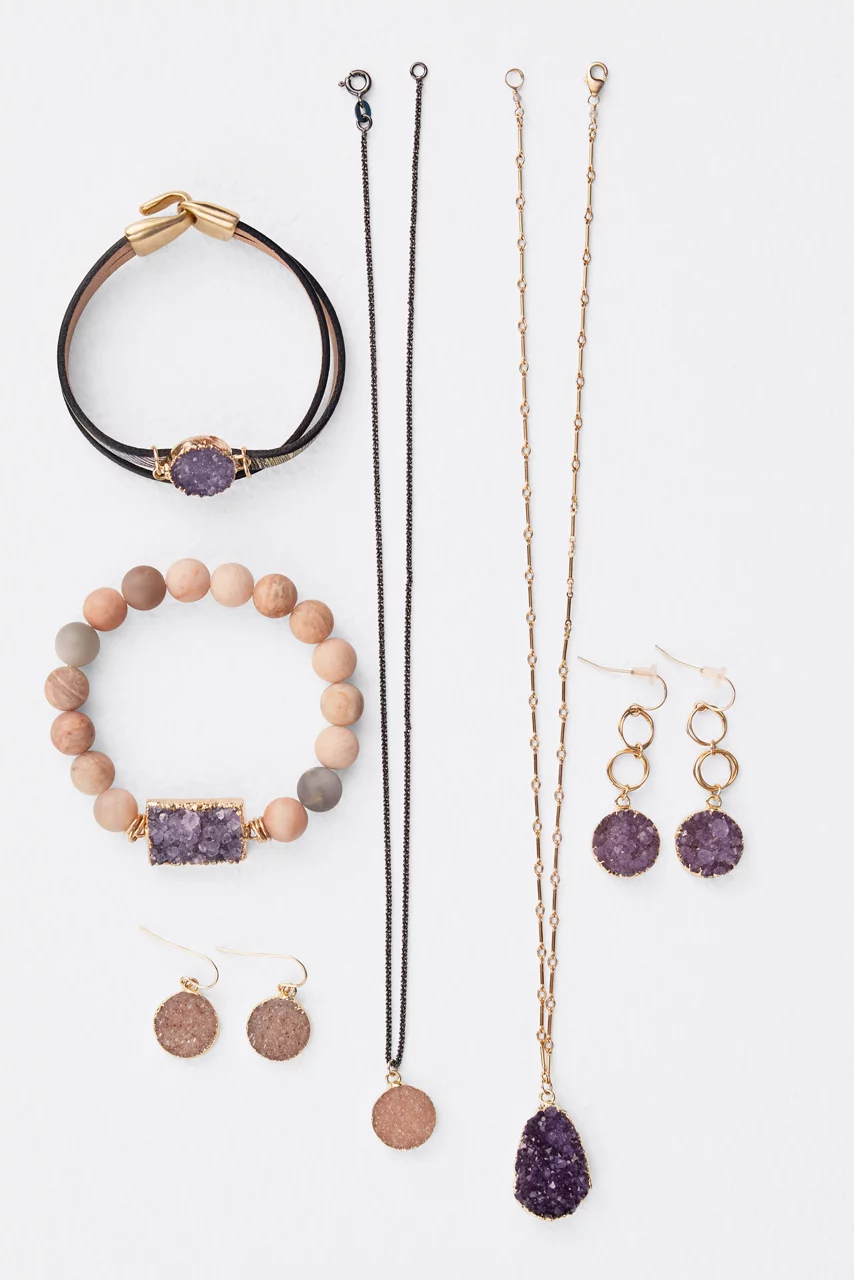 Adding a hint of sparkle to your look, the Druzy Round Earrings offer a stunning combination of metal and stone. Featuring a glittering pink stone at the center of a pronged gold-tone setting, these earrings for pierced ears are versatile and fun. Pair with cotton sundress and add the Druzy necklace for a polished brunch ensemble.