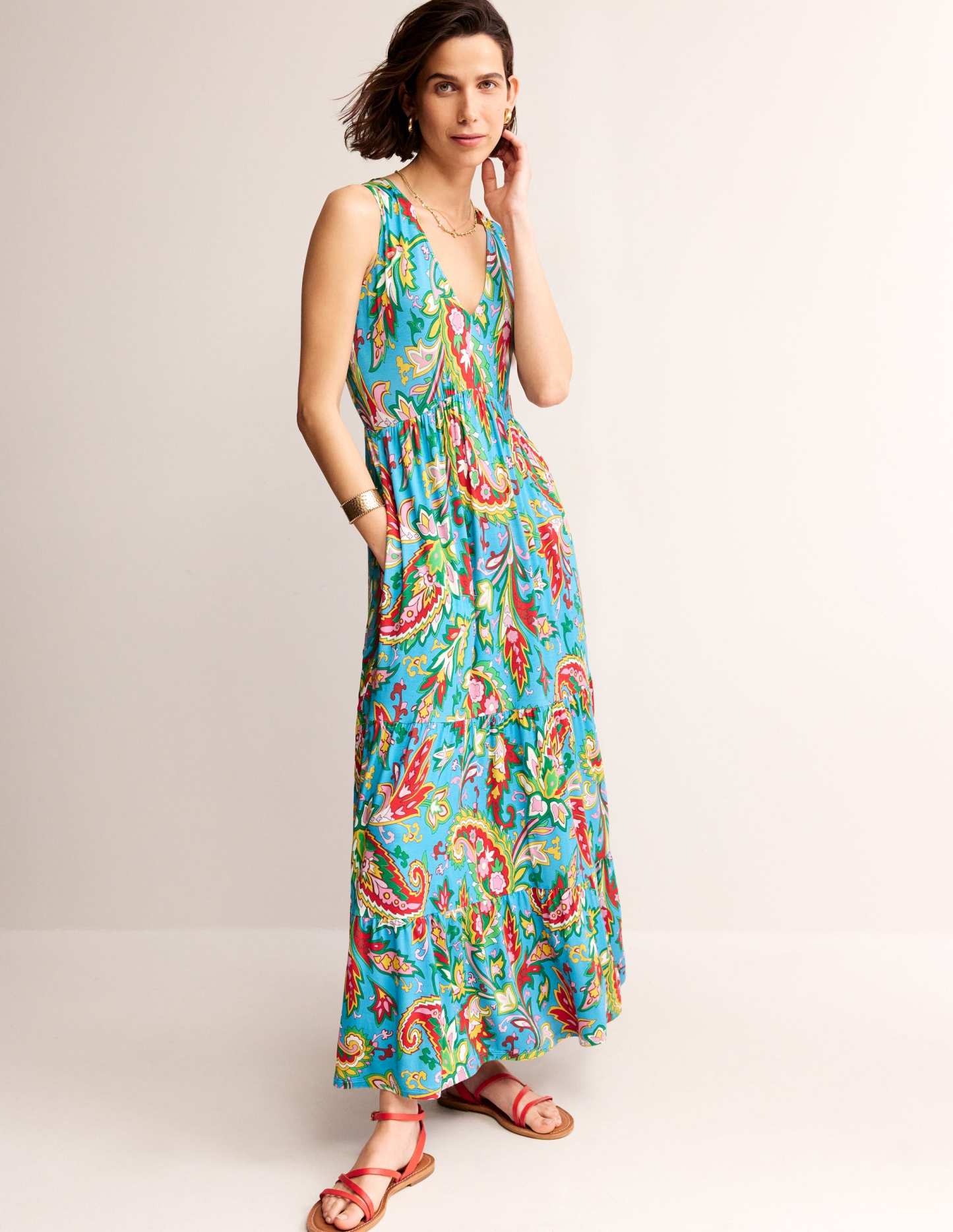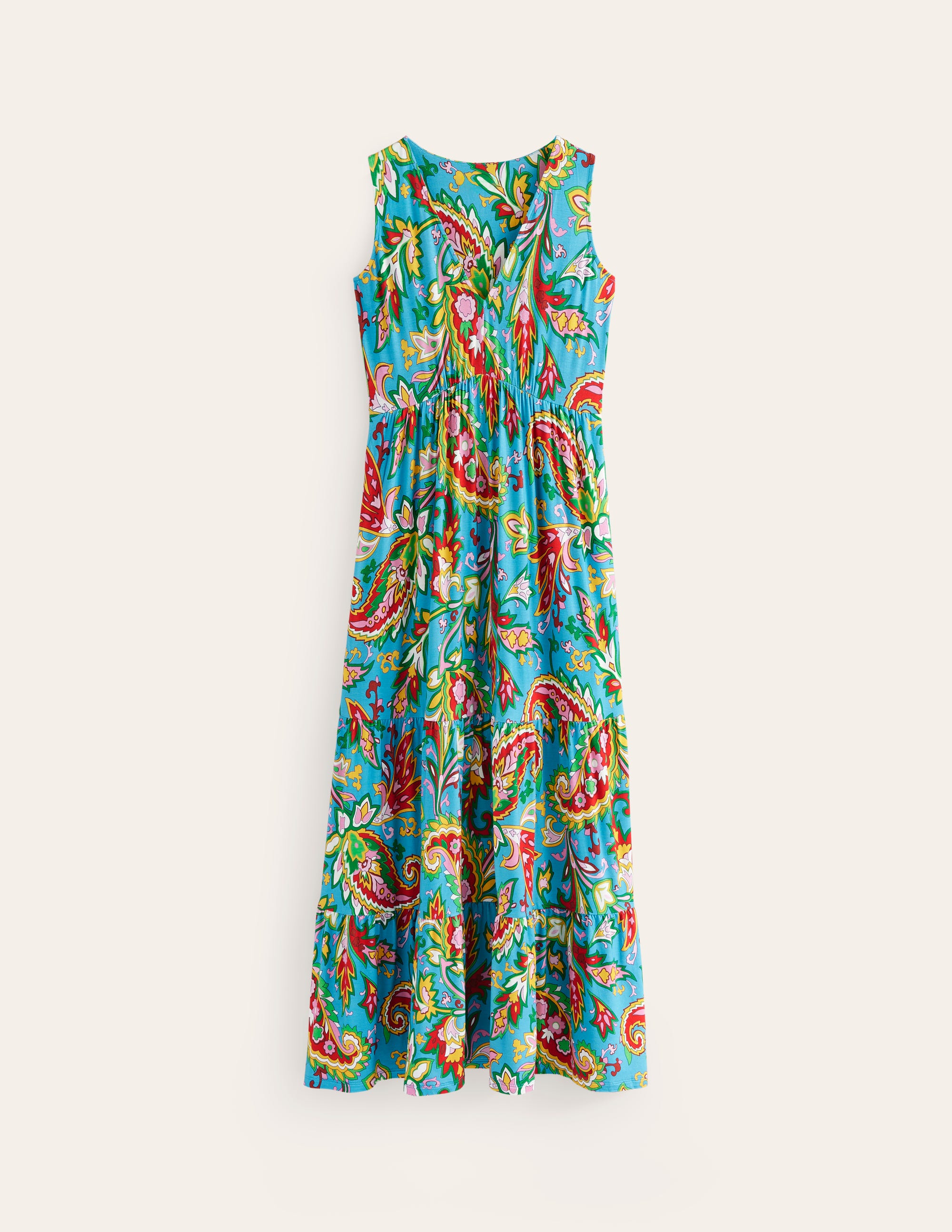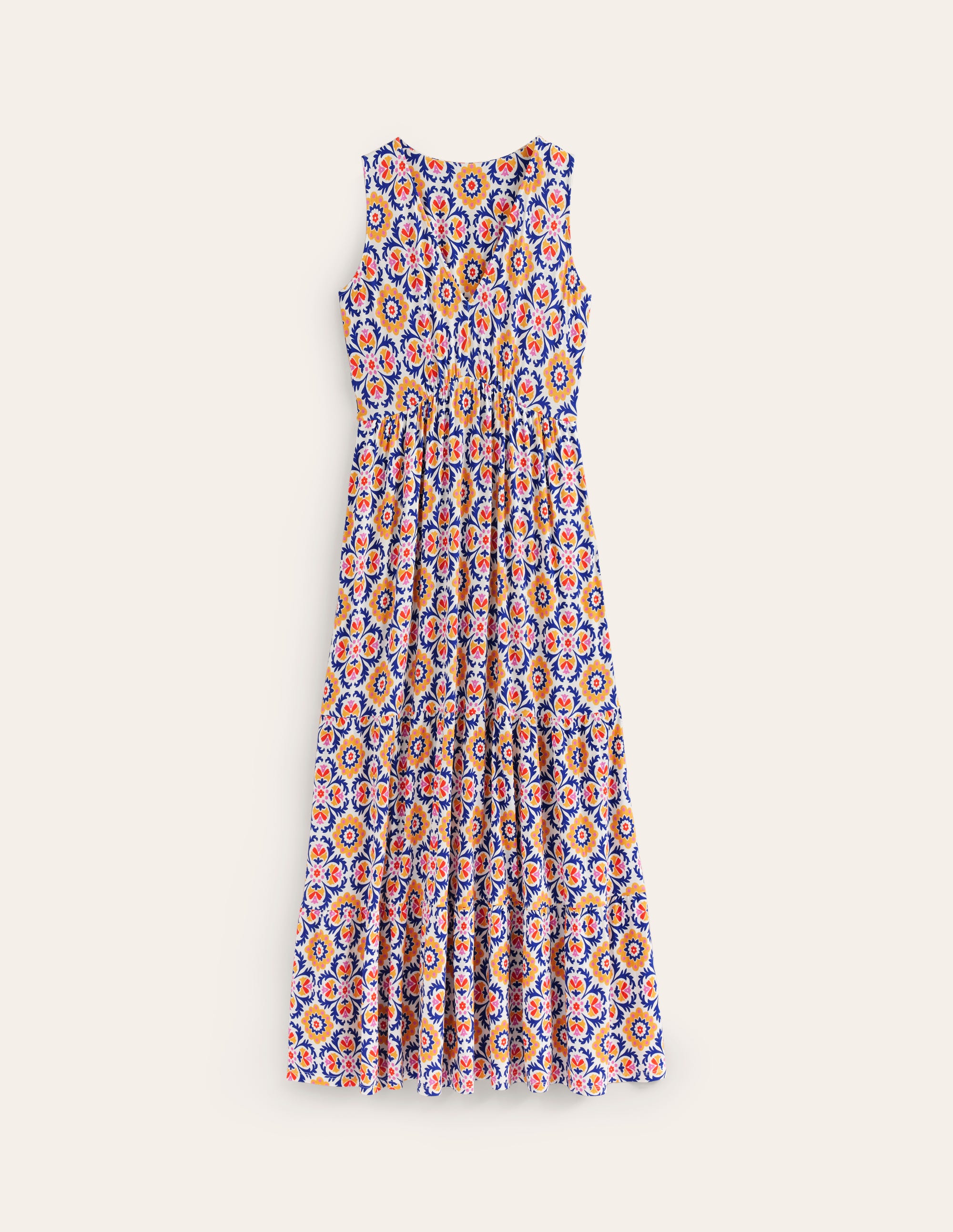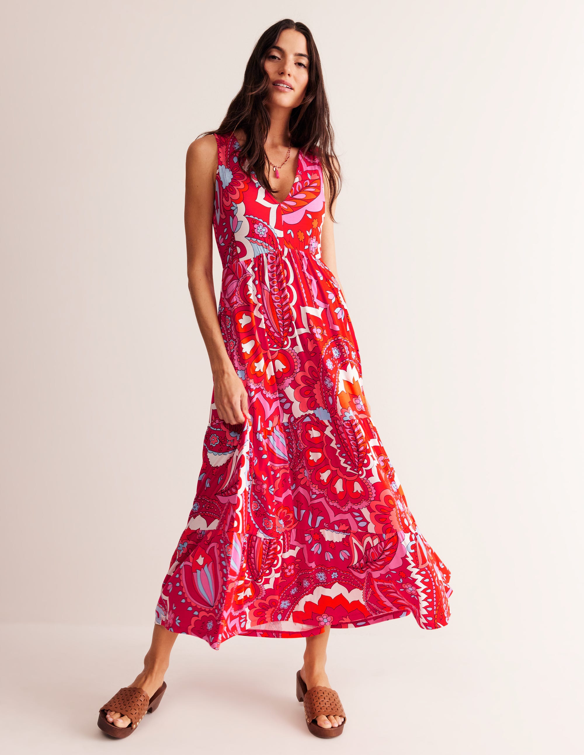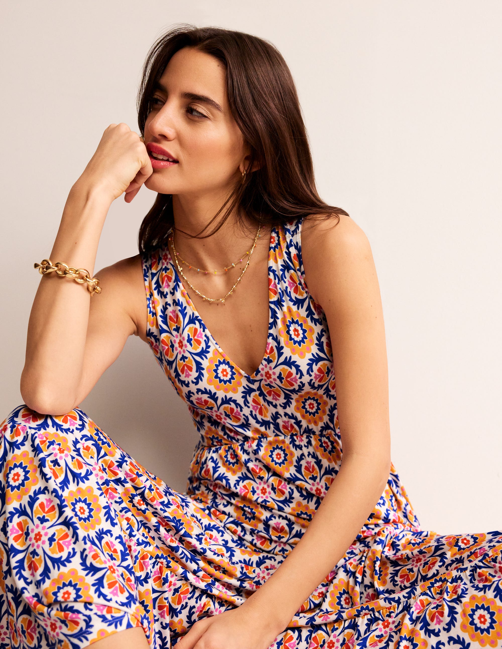 Even if the weather isn't doing its bit, you can inject a bit of sunshine into your day in the form of the Sylvia dress. Made from jersey, it's shaped with a tiered skirt and sleeveless V-neck bodice. Oh, and how could we forget about our signature patterns?