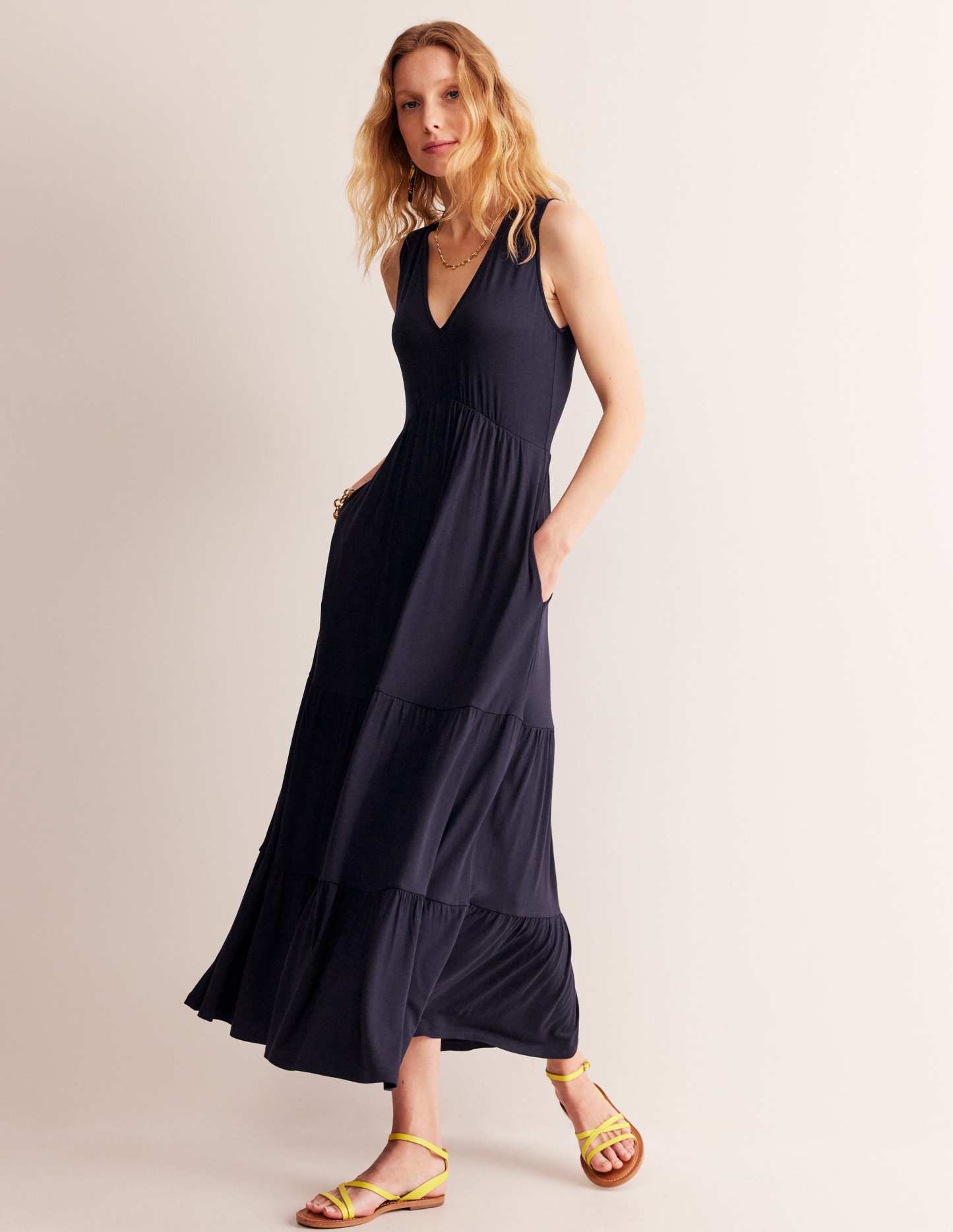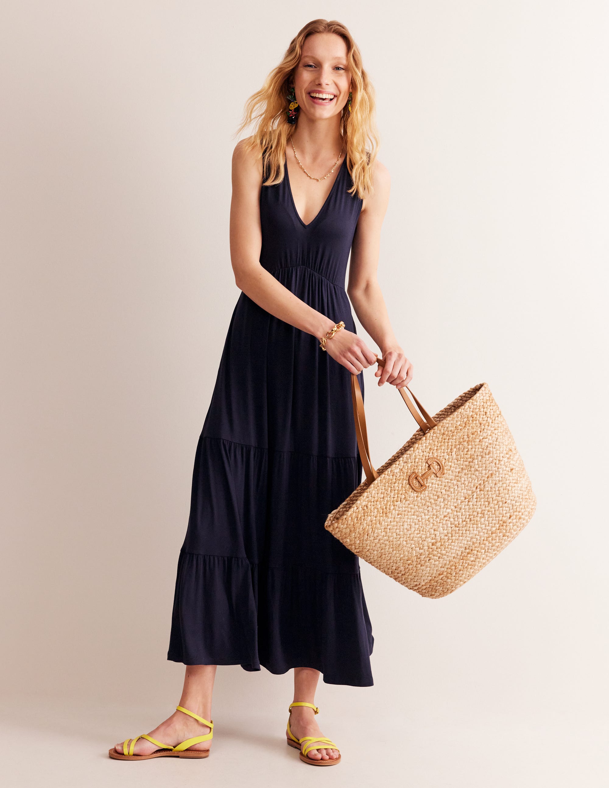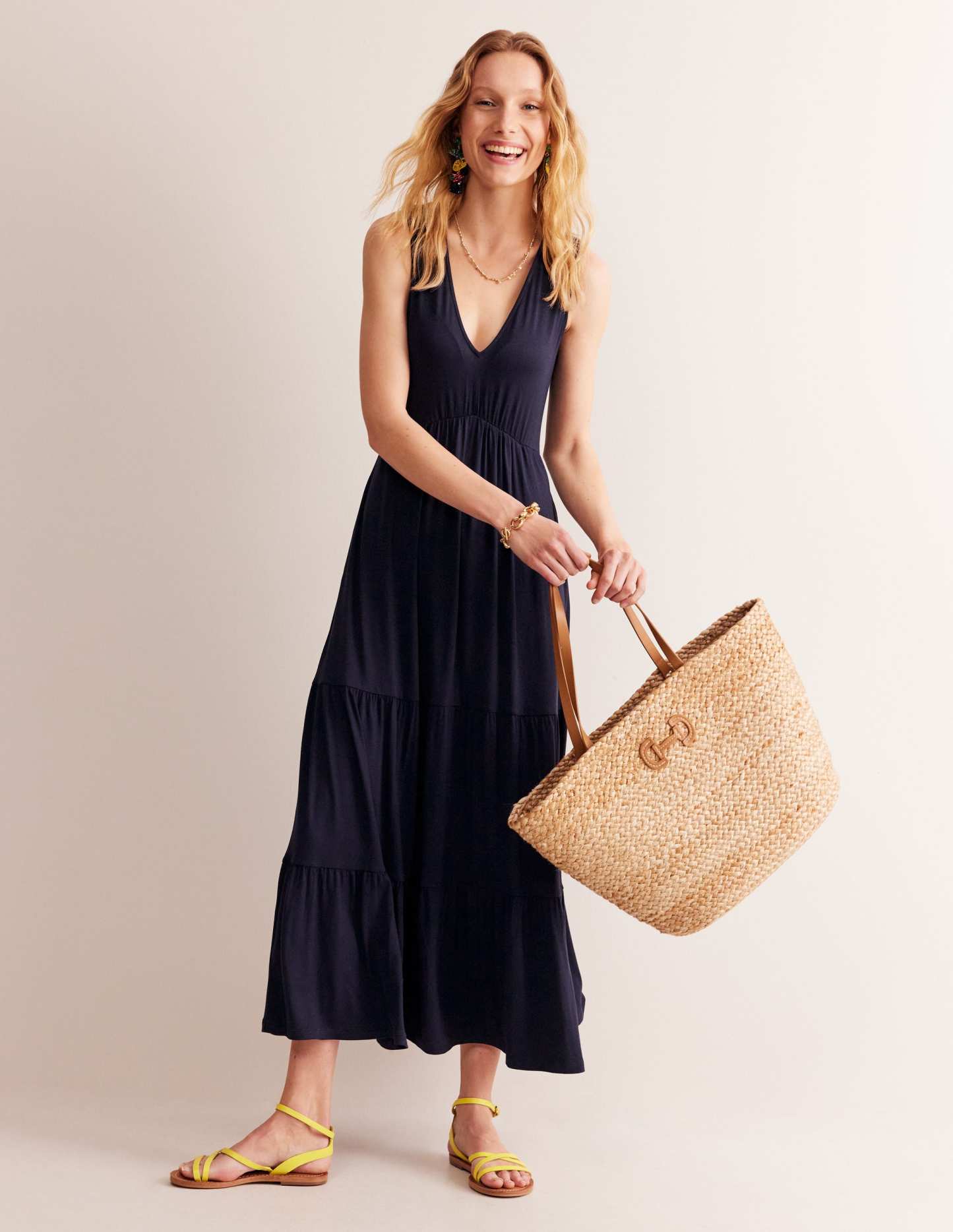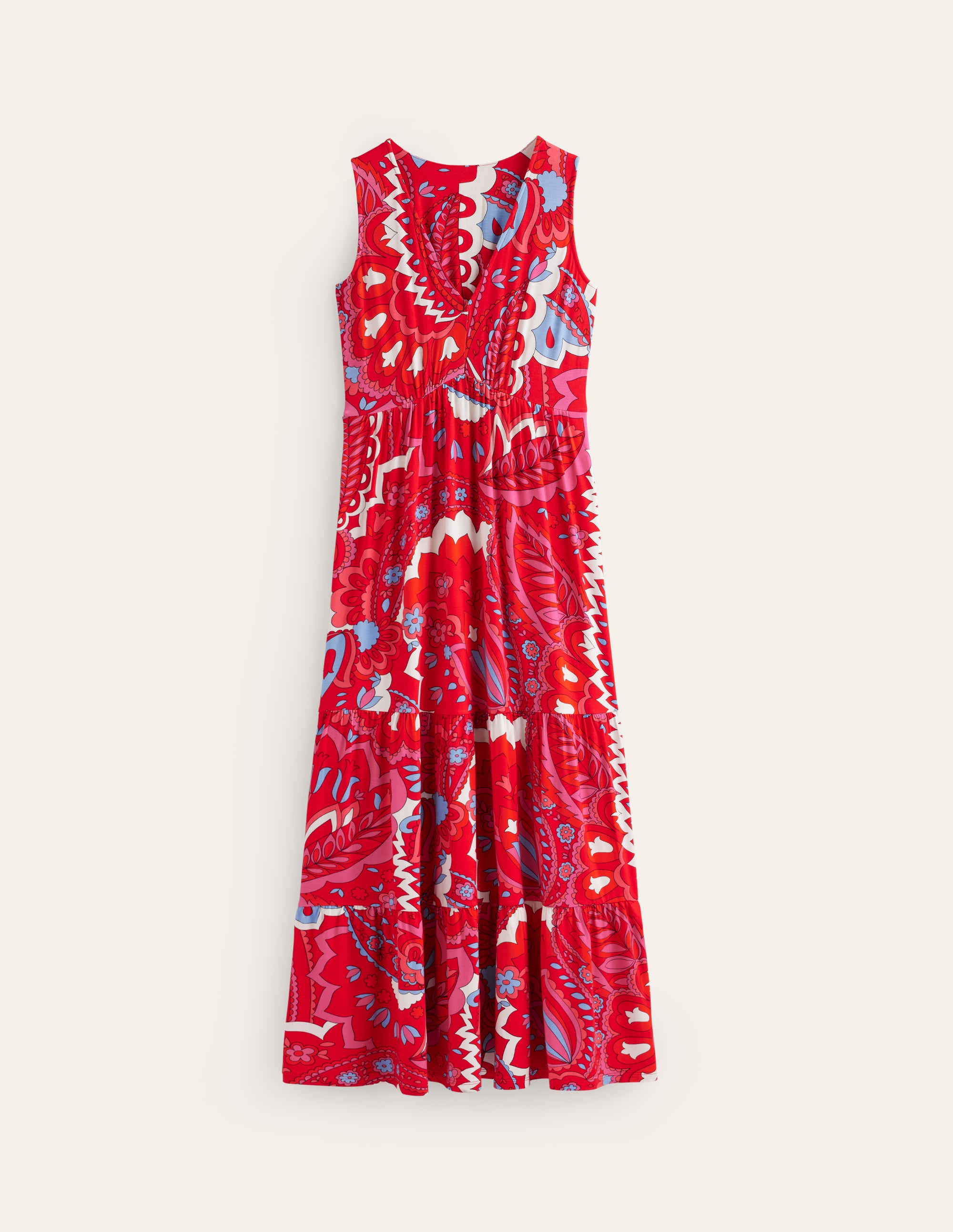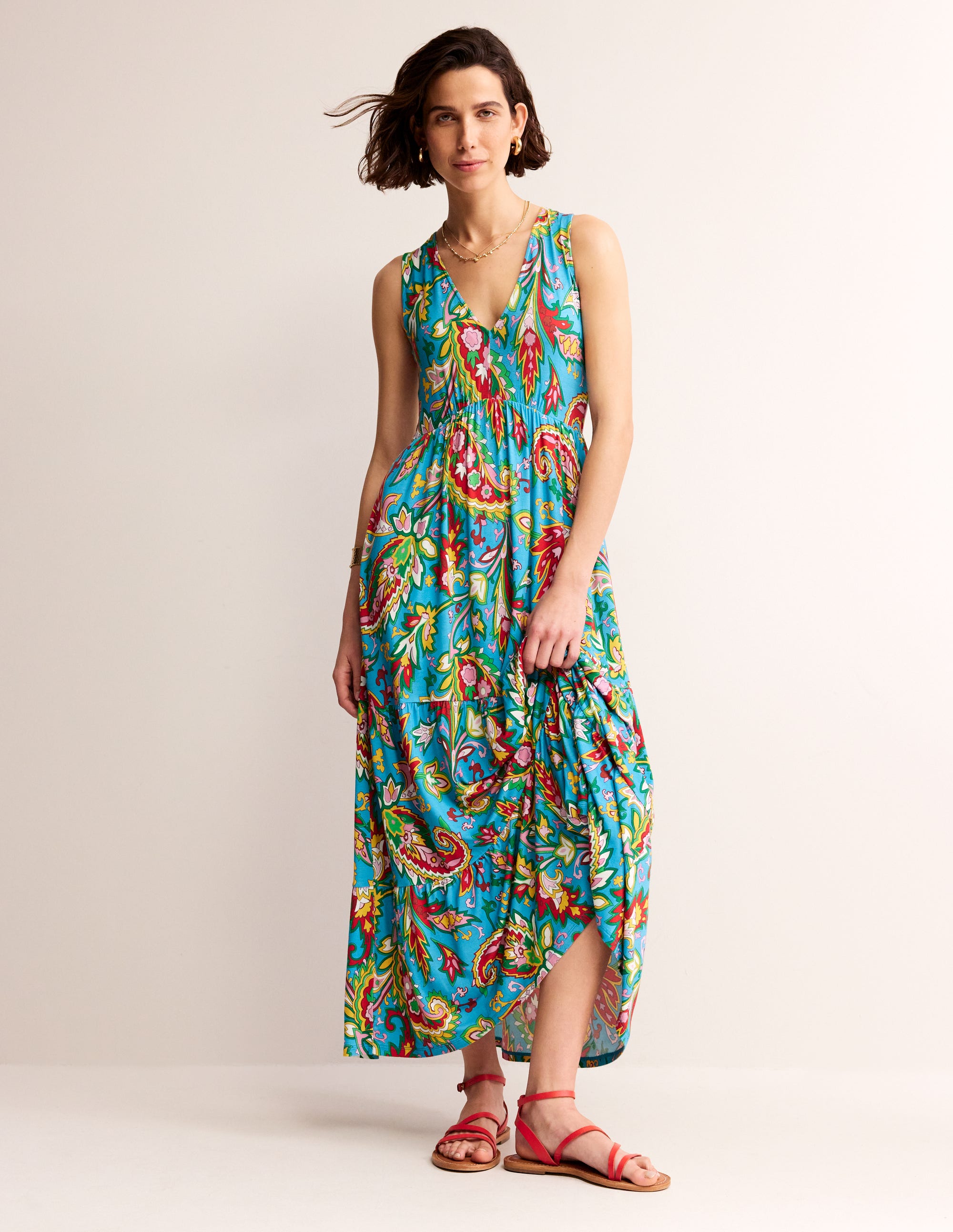 Even if the weather isn't doing its bit, you can inject a bit of sunshine into your day in the form of the Sylvia dress. Made from jersey, it's shaped with a tiered skirt and sleeveless V-neck bodice. Oh, and how could we forget about our signature patterns?