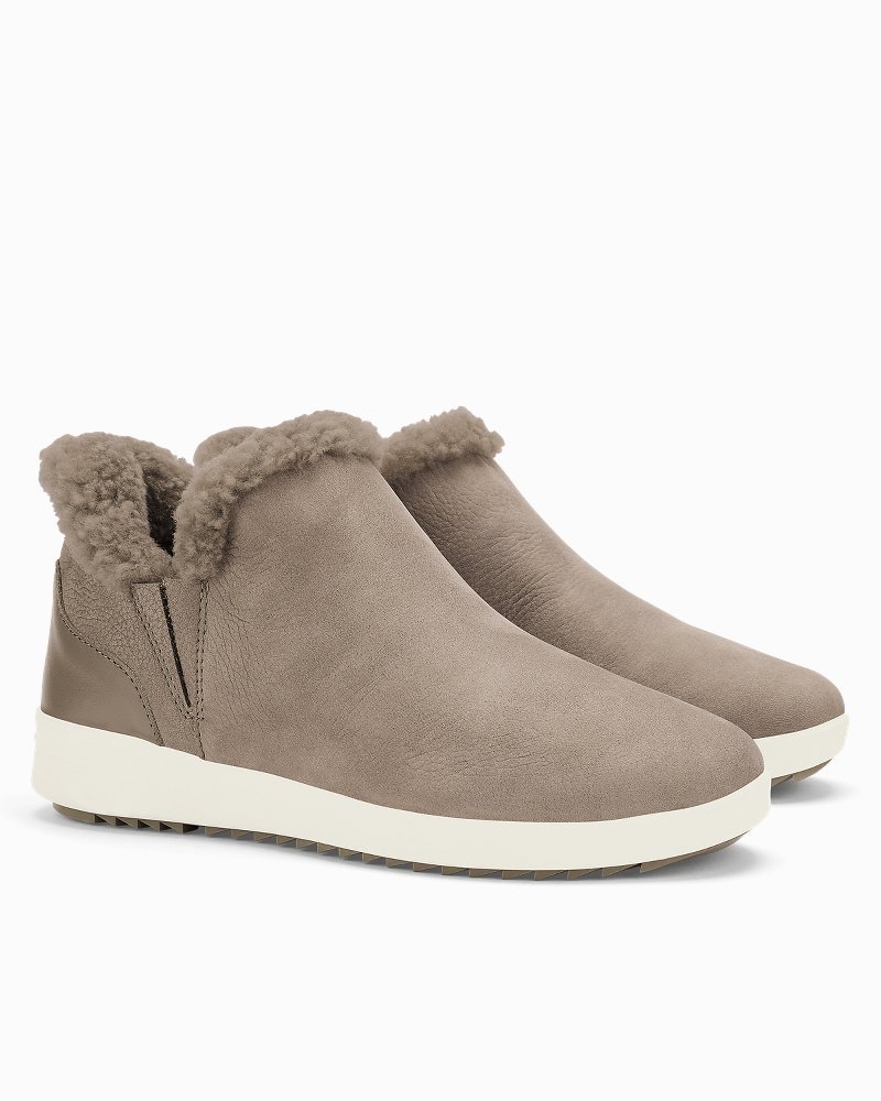 Nubuck leather upper, PU footbed, EVA and Wet Grip Rubber outsole.Waterproof pebbled leather upper.Removable and washable footbed with sheepskin shearling lining.Lugged outsole design for added traction.Medial and lateral gore paneling for easy on-and-off wear.Imported.20547