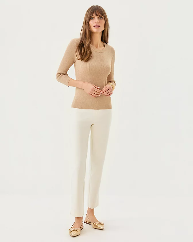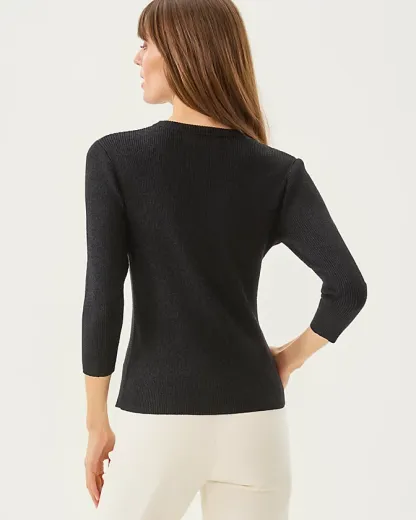 Fitted, ribbed, crew neck sweater with 3/4 length sleeves.