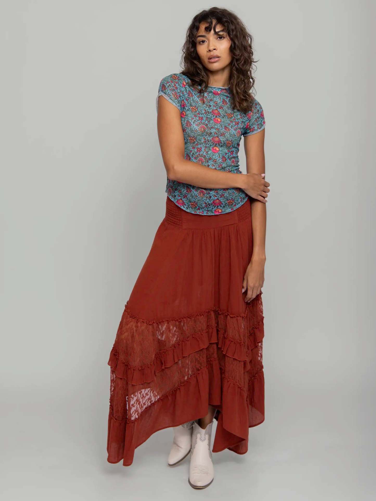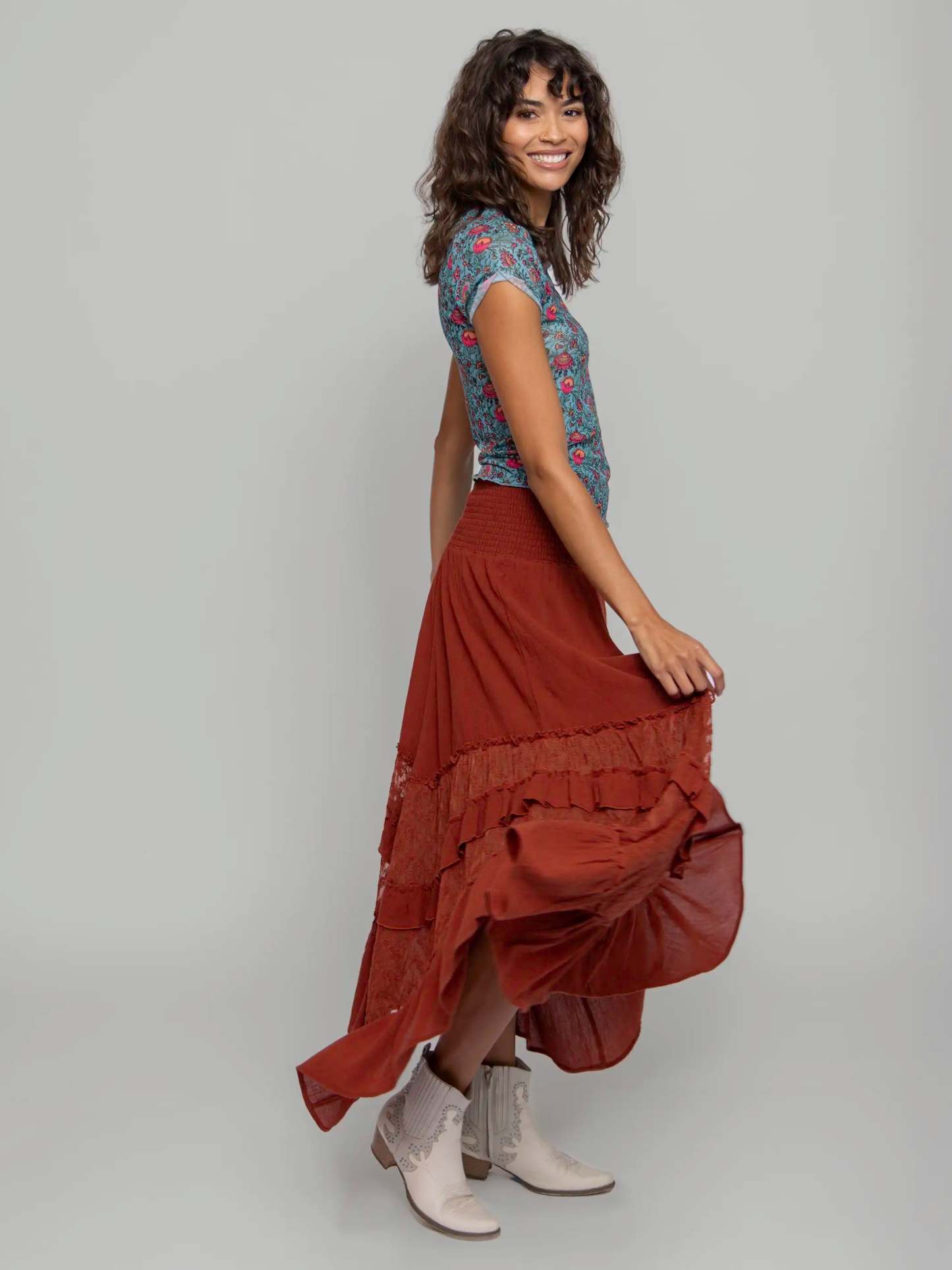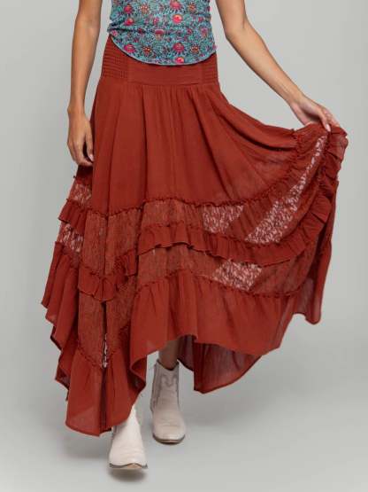 Feelin' Alive Lace Midi Skirt - Rust