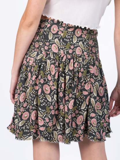 Feelin' Alive Mini Skirt - Green Floral Vines