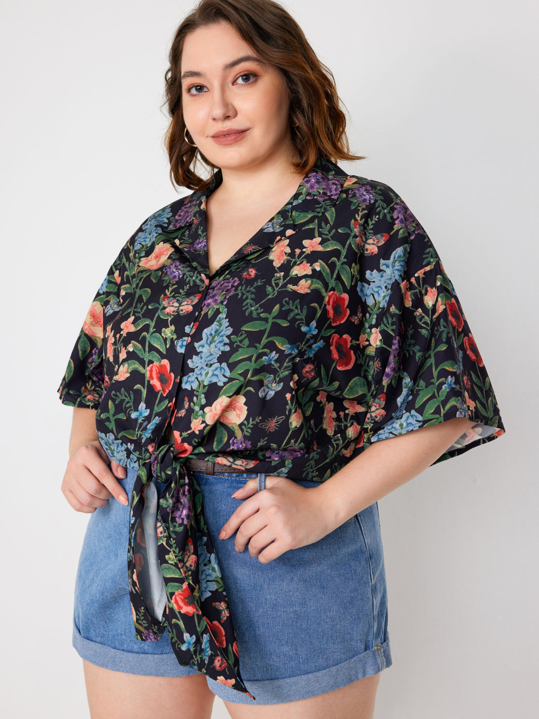 Floral Tie Front Short Sleeve Blouse Curve & Plus
