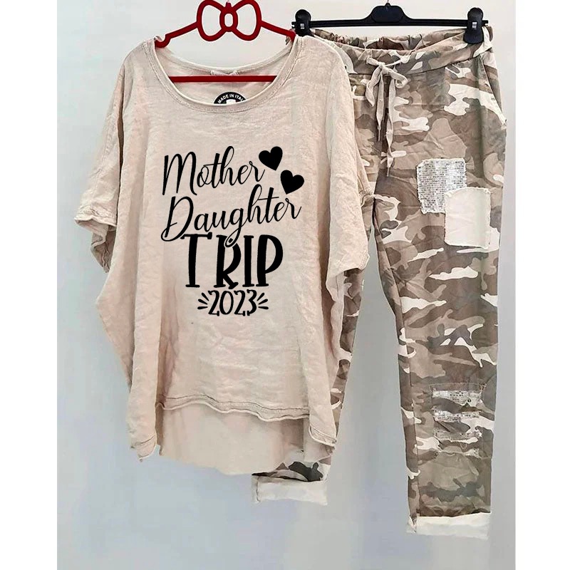 Mother Daughter Trip 2023 Cotton Linen Two Piece Set