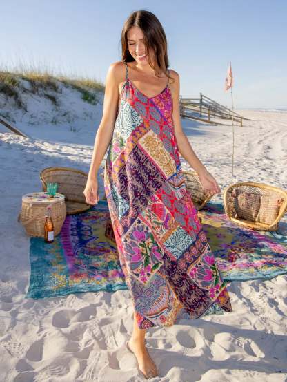 Gracie Slip Maxi Dress - Boho Blooms Patchwork
