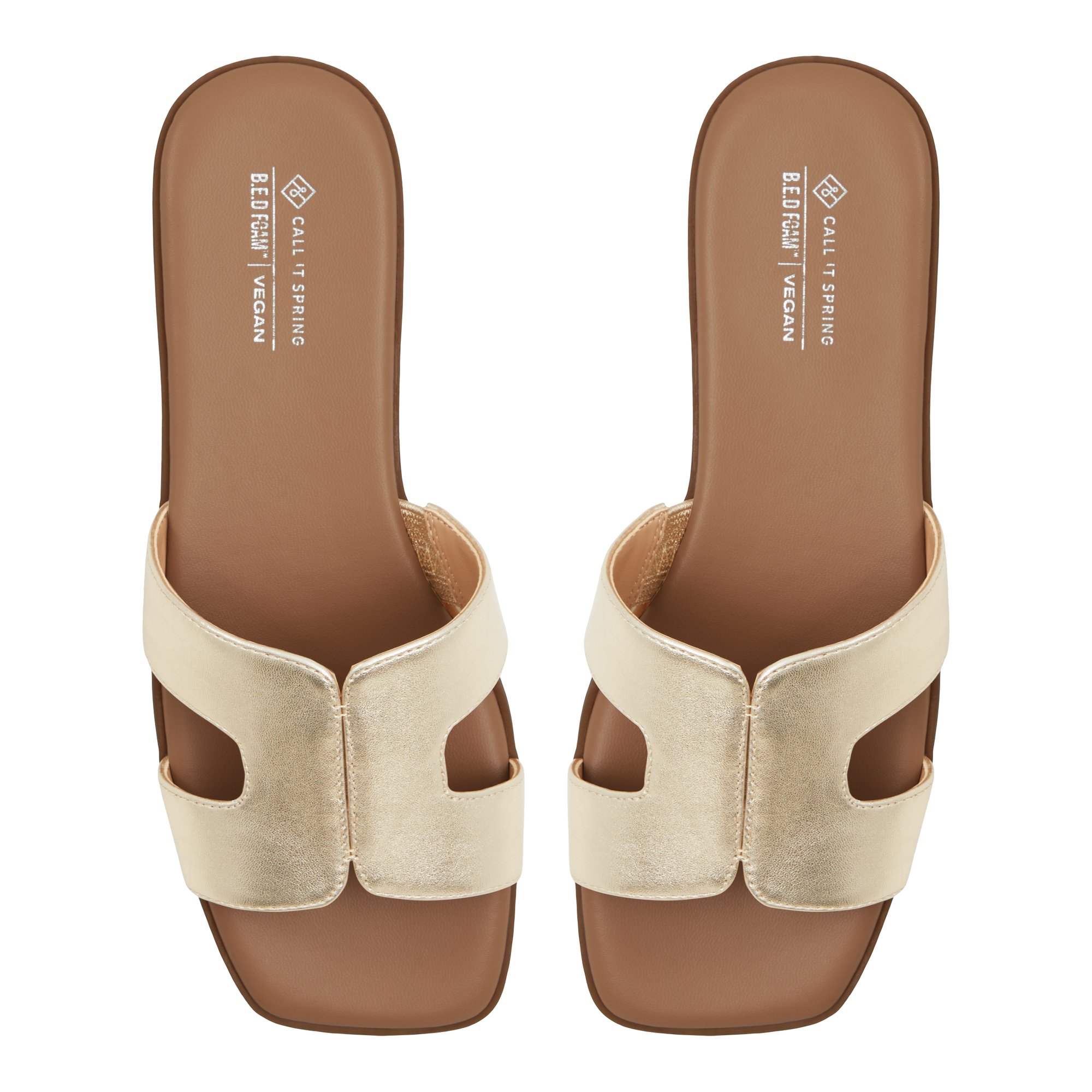 POV: You're strolling somewhere exotic in the Haylee slides. They are made from 100% vegan materials and feature our B.E.D Foam™ Comfort Technology. Even if you are just heading out around town, they are the perfect slip-on-and-go essential.