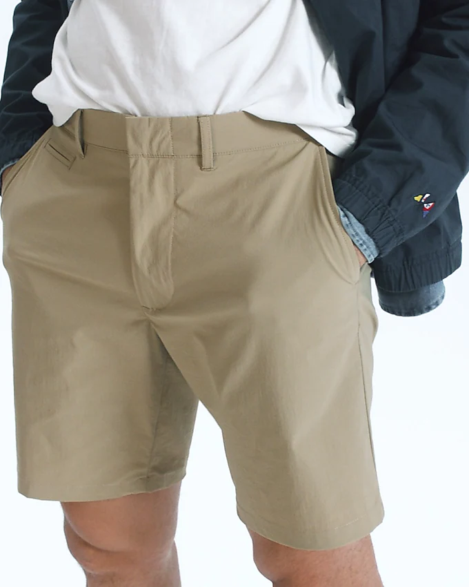 of your warm-weather wardrobe. They're made in our customer-favorite tech fabric, a blend of 57 percent recycled nylon and stretch that moves with you. These comfortable, versatile shorts go everywhere from the golf course to the beach to dinner. They're water-resistant (so spills and showers won't slow you down) and shield you from the sun's rays with UPF 50+ sun protection. We've updated them with an interior elastic panel at the back waistband for the perfect fit and a silicone shirt gripper to keep everything in place when you're on the go. Breathable mesh pockets, plus a hidden zip pocket mean you'll have plenty of room to store your essentials during your active(ish) schedule.