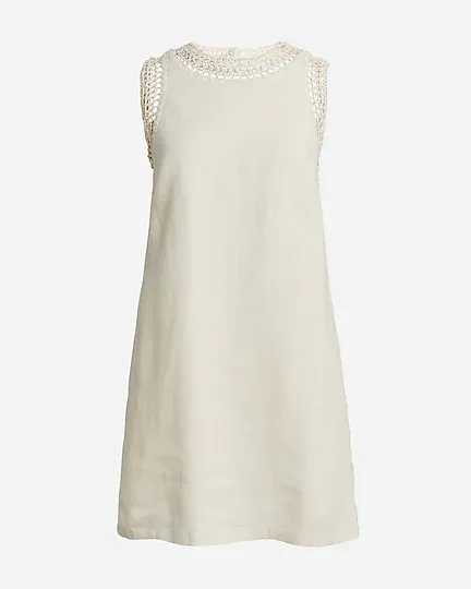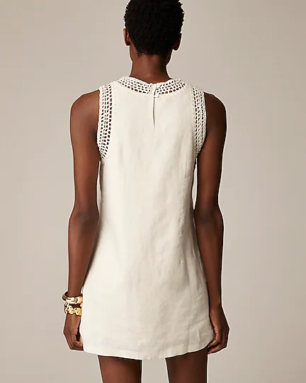 It's easy and effortlessly flattering, thanks to the high neckline, relaxed fit and mini length. Plus, it has intricate crochet details at the neckline and sleeves and a lightweight 100 percent linen finish.
