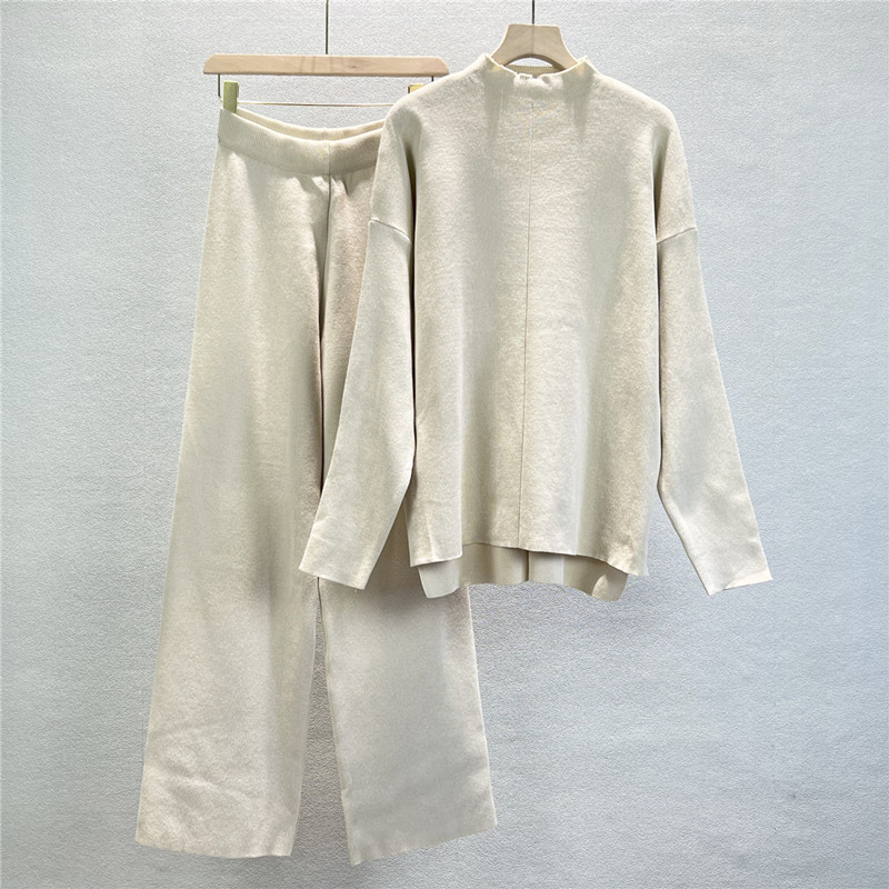 Irregular knitted top and wide-leg pants two-piece set