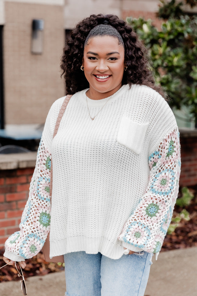 Wanna Be With You Ivory Multi Crochet Sleeve Sweater