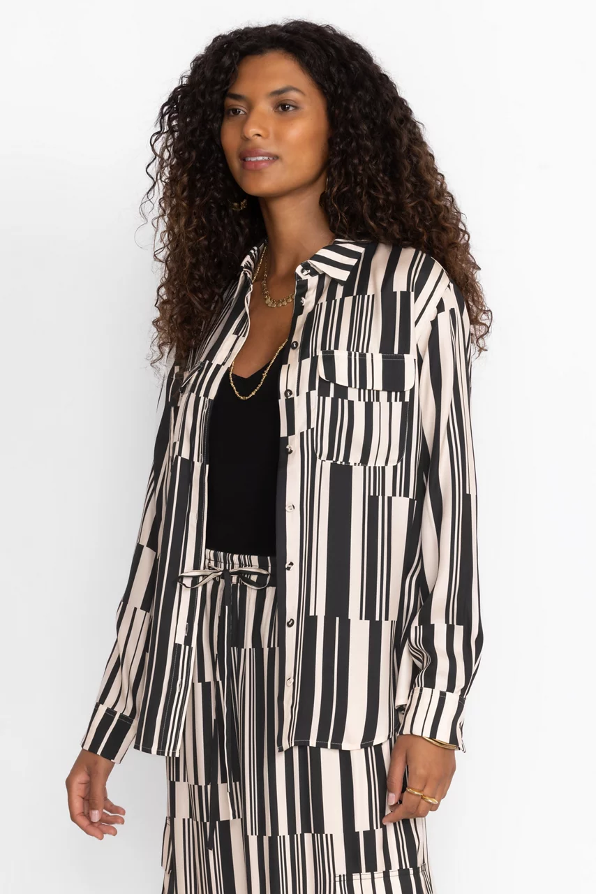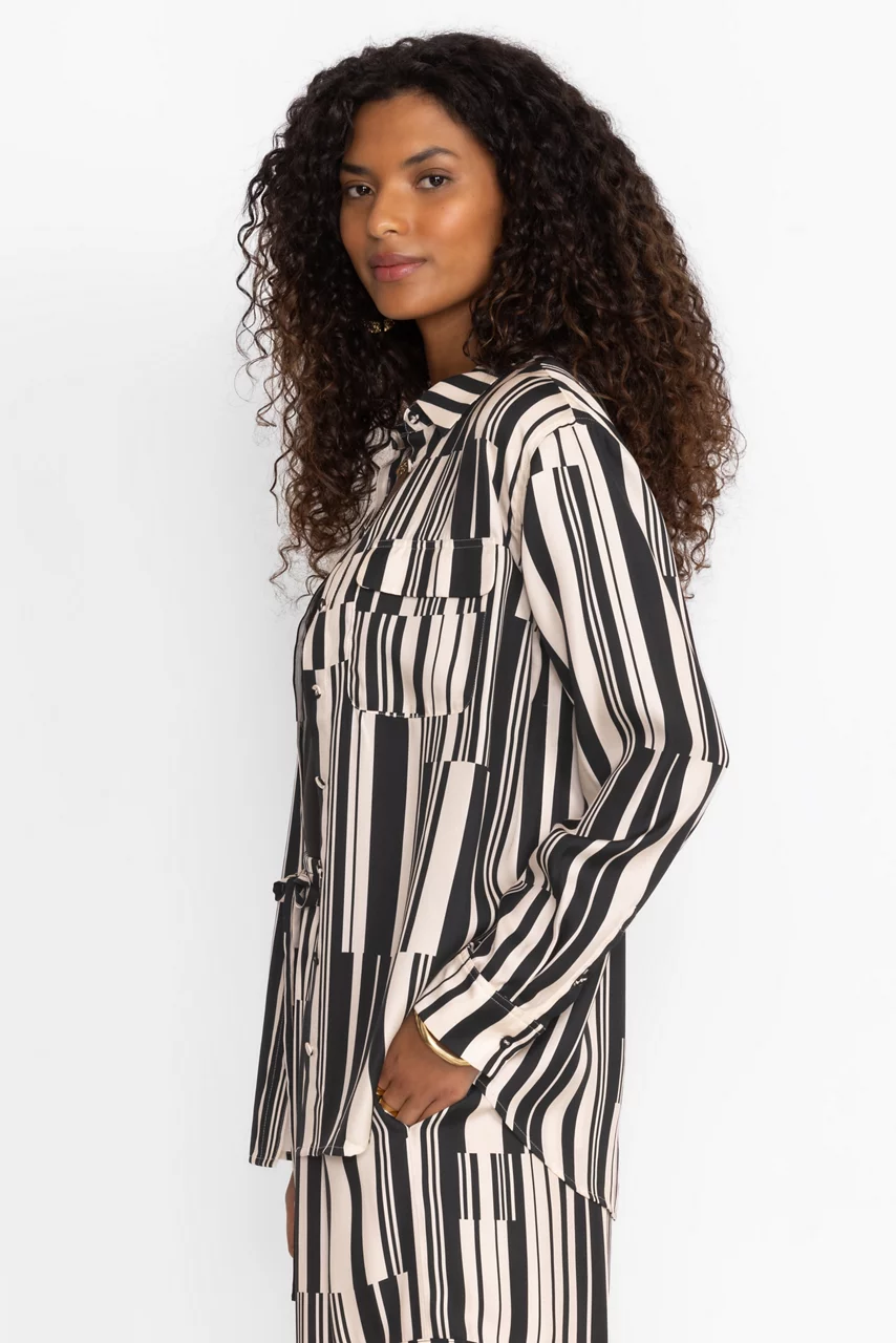 Crafted from a lightweight silk blend, the Kassie Double Pocket Shirt offers a fresh take on a classic button-down. Featuring a traditional collared button front, this unique blouse features patch pockets and box pleating for added texture. Pair with black palazzo pants and leather flats for a modern office look.
