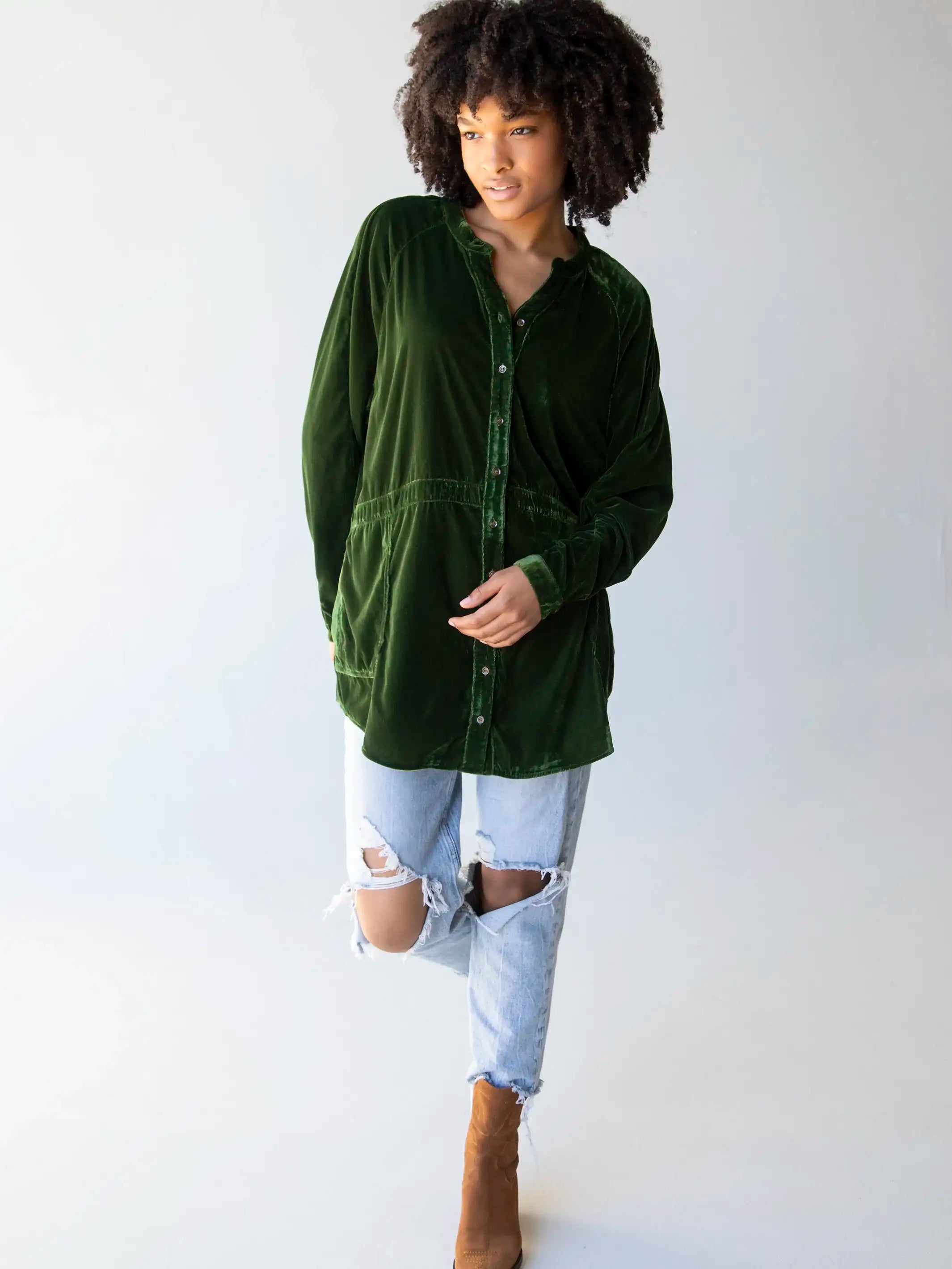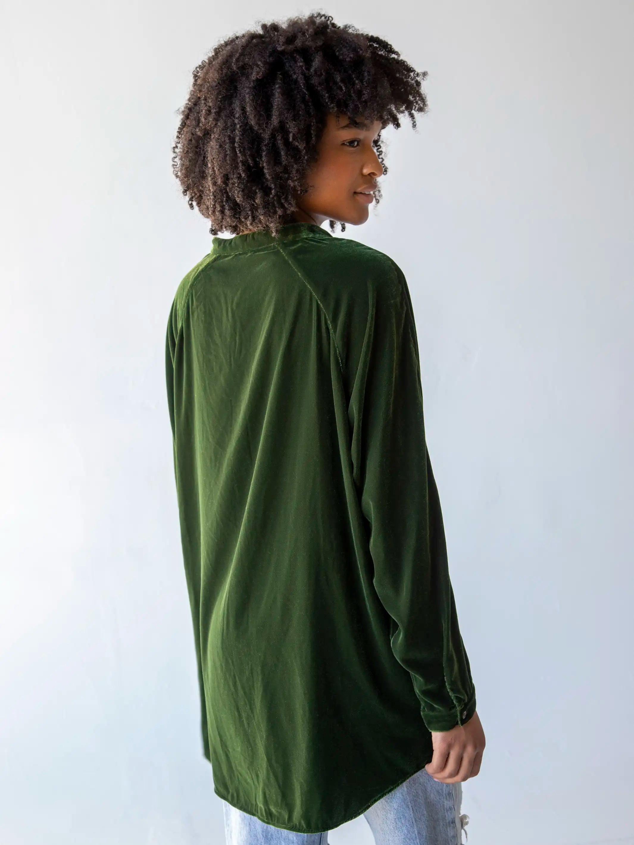 Laid Back Velvet Button Down - Military Green