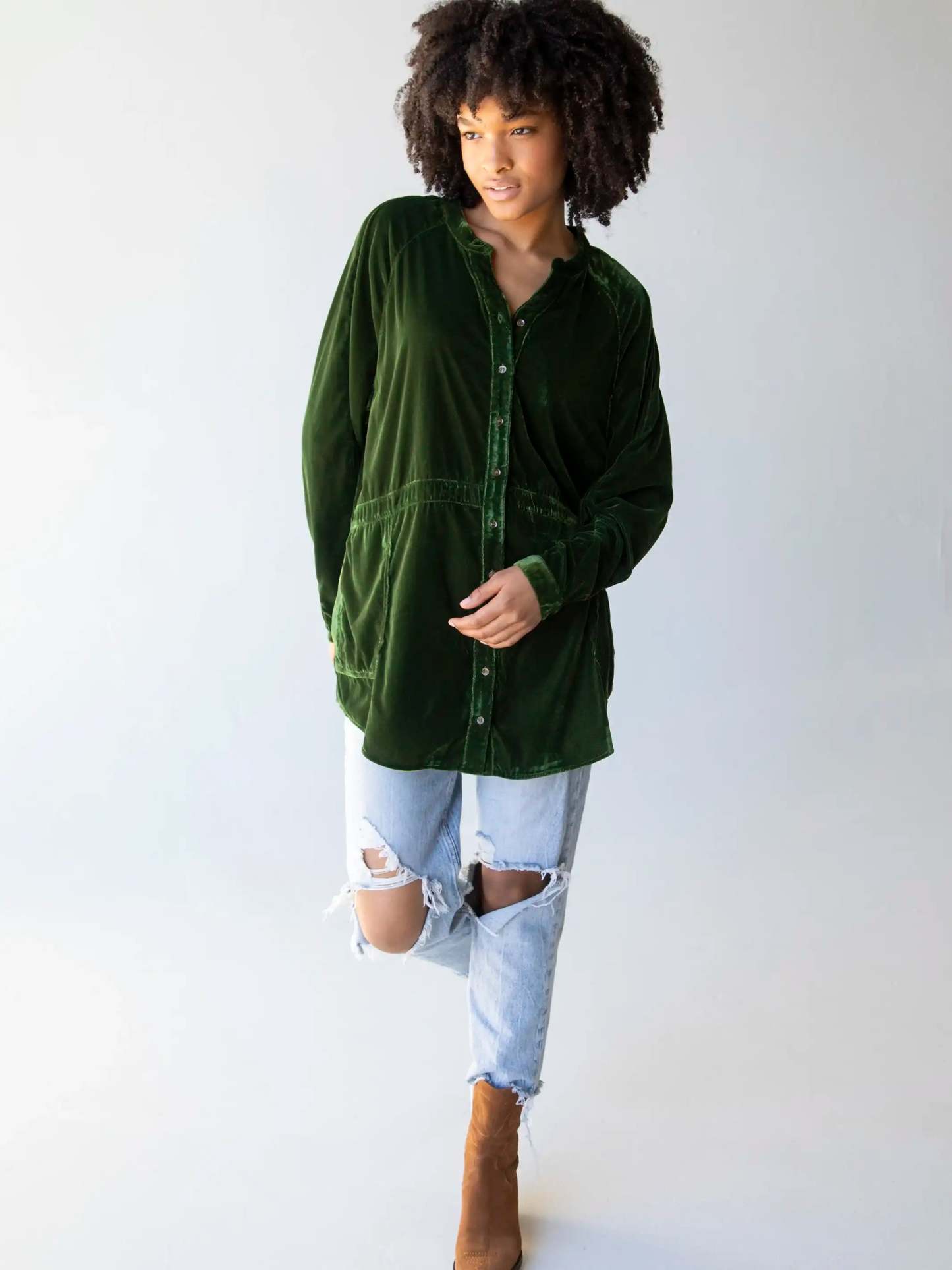 The perfect combo of luxe velvet & rich color, it's easy to layer and even has pockets!