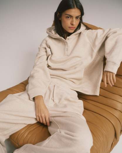The laid-back essential we all need in our wardrobe. The Loopback Henley Hoodie features a roomy pouch pocket, button front detail and a branded tab. Cut from 100% Organic Cotton loop-back fabric. Style yours with the matching sweatpants.