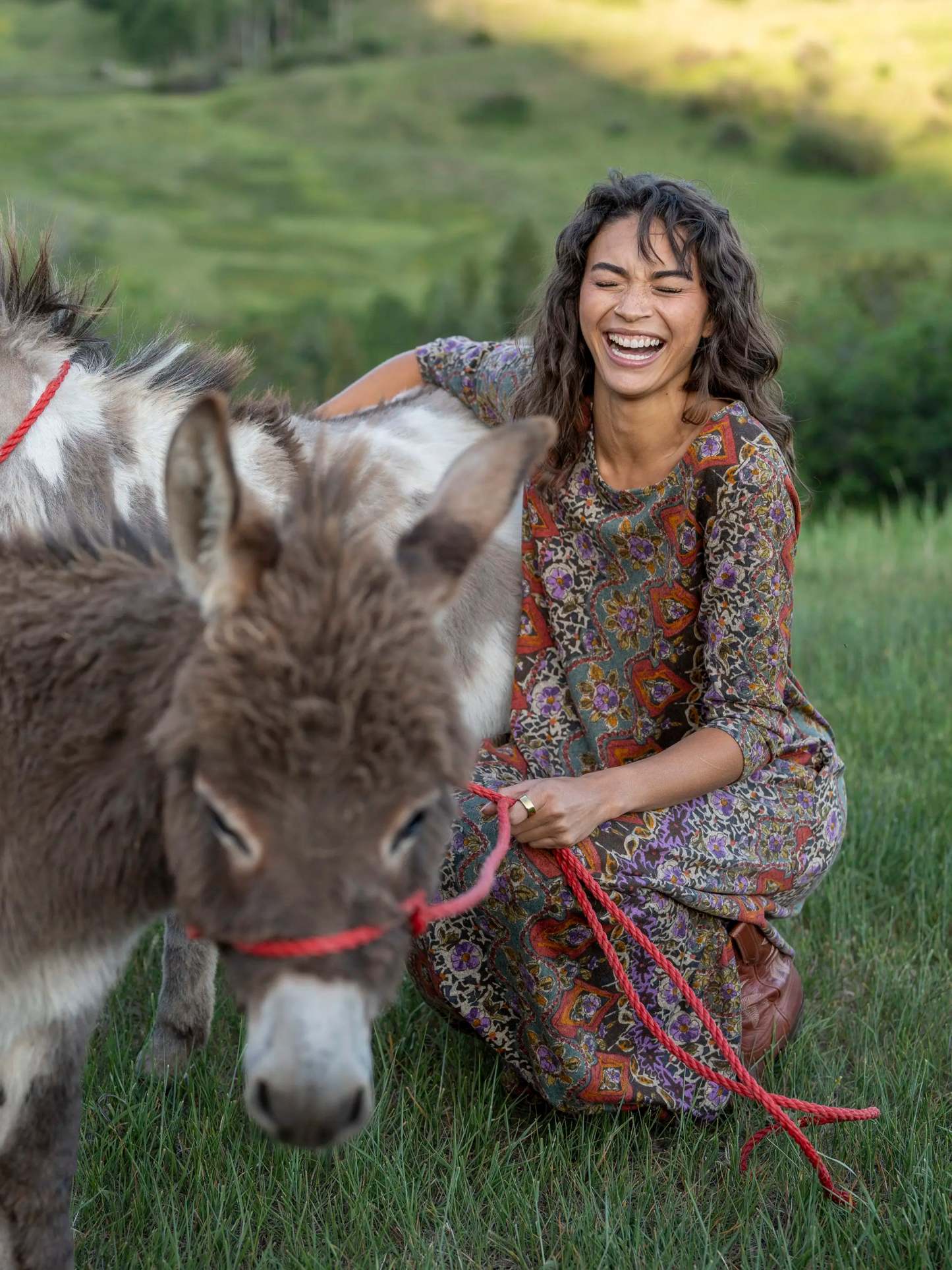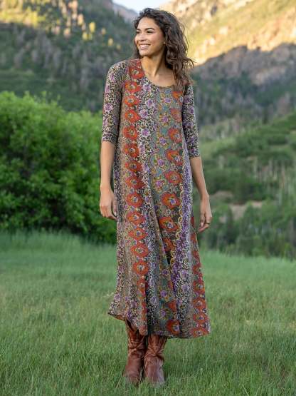 Lottie Sweater Knit Maxi Dress - Brown Tuscany Border
