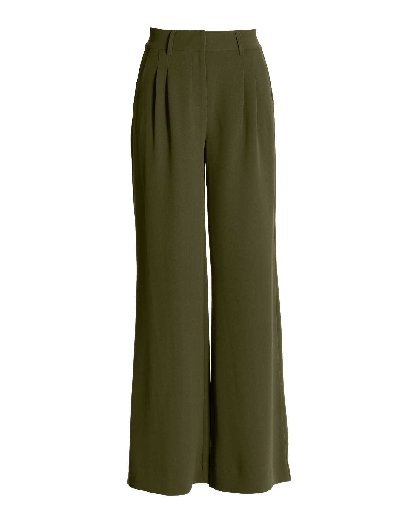 Wide-leg silhouetteSoft pleatsZipper fly with hook-and-bar closure; Belt loopsBack faux welt pocketFully lined100% polyesterMachine washImportedSize & Fit