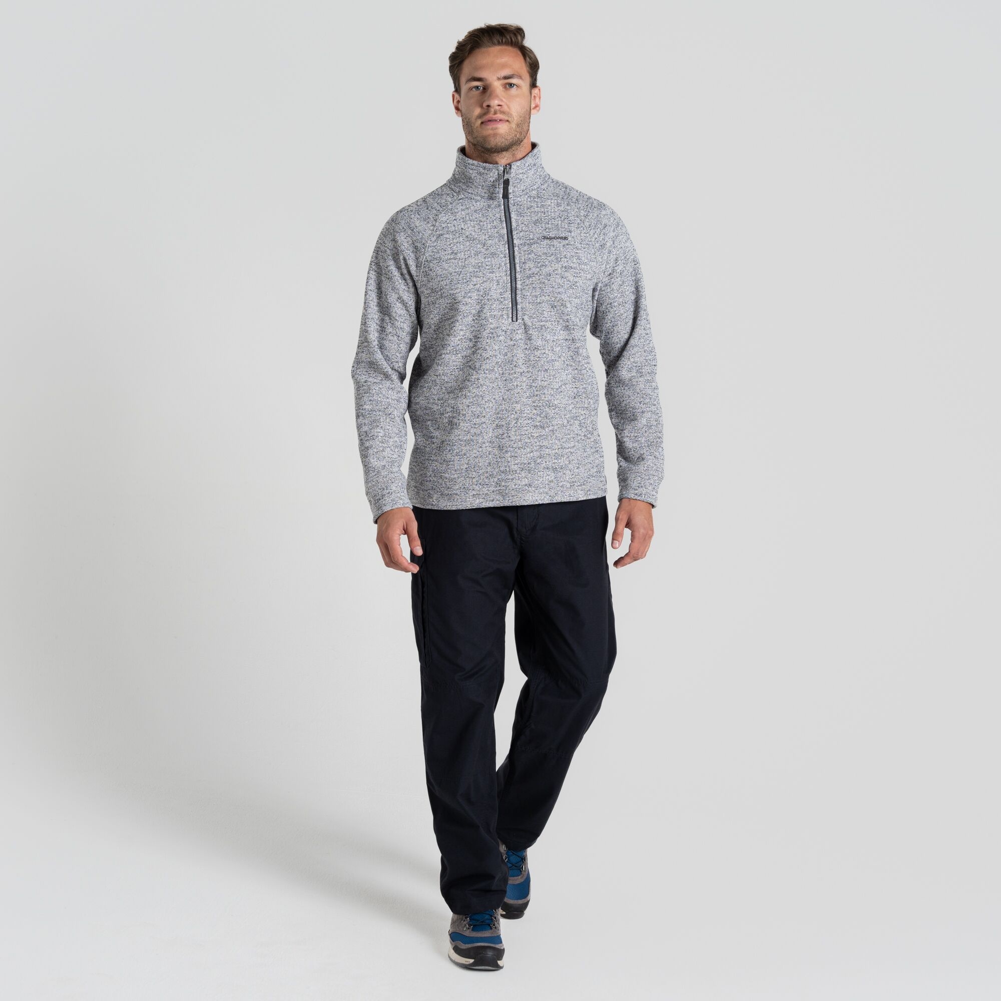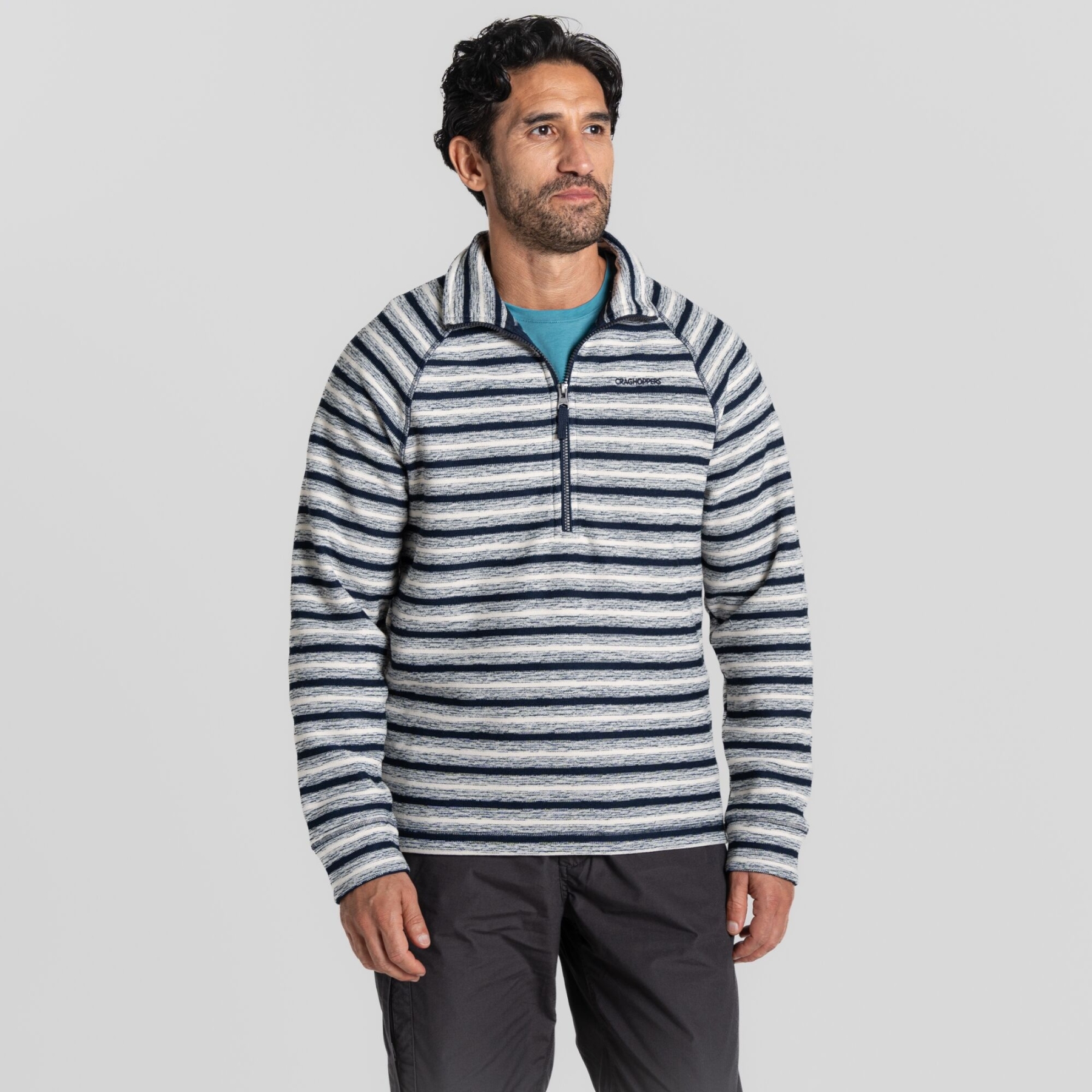 Layer up in this insulating top made from knit-look fleece fabric in a choice of marled or striped options with contrast half-zip fastening.