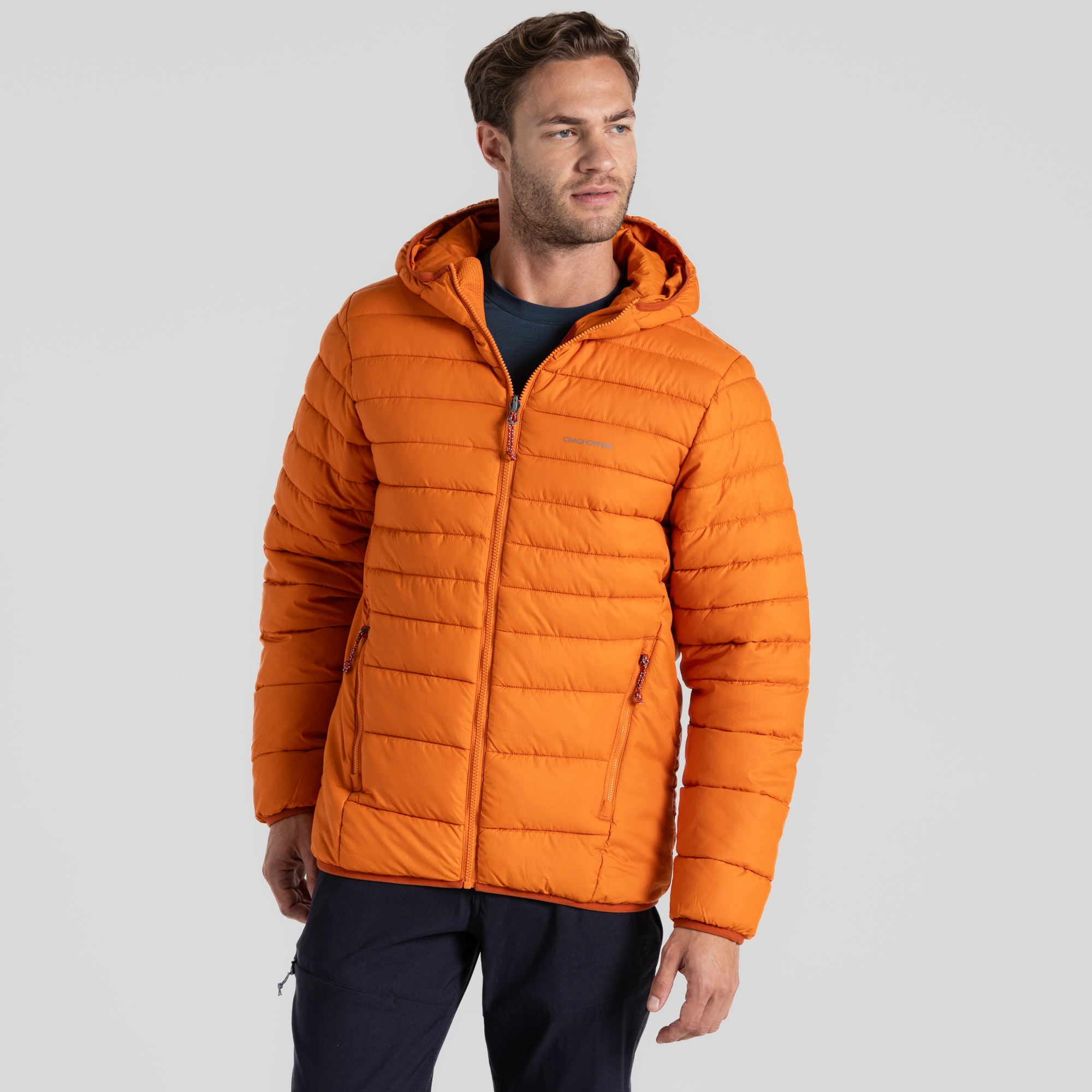 Enjoy instant insulating coverage from this packable, super-compressible jacket that's good to go straight from its own stuff sack. The high-loft ThermoPro fill locks heat in at the core for downlike performance. Featuring water-repellent H2OShield finish and incorporating zipped pockets and a grown-on hood with elasticated herringbone binding.