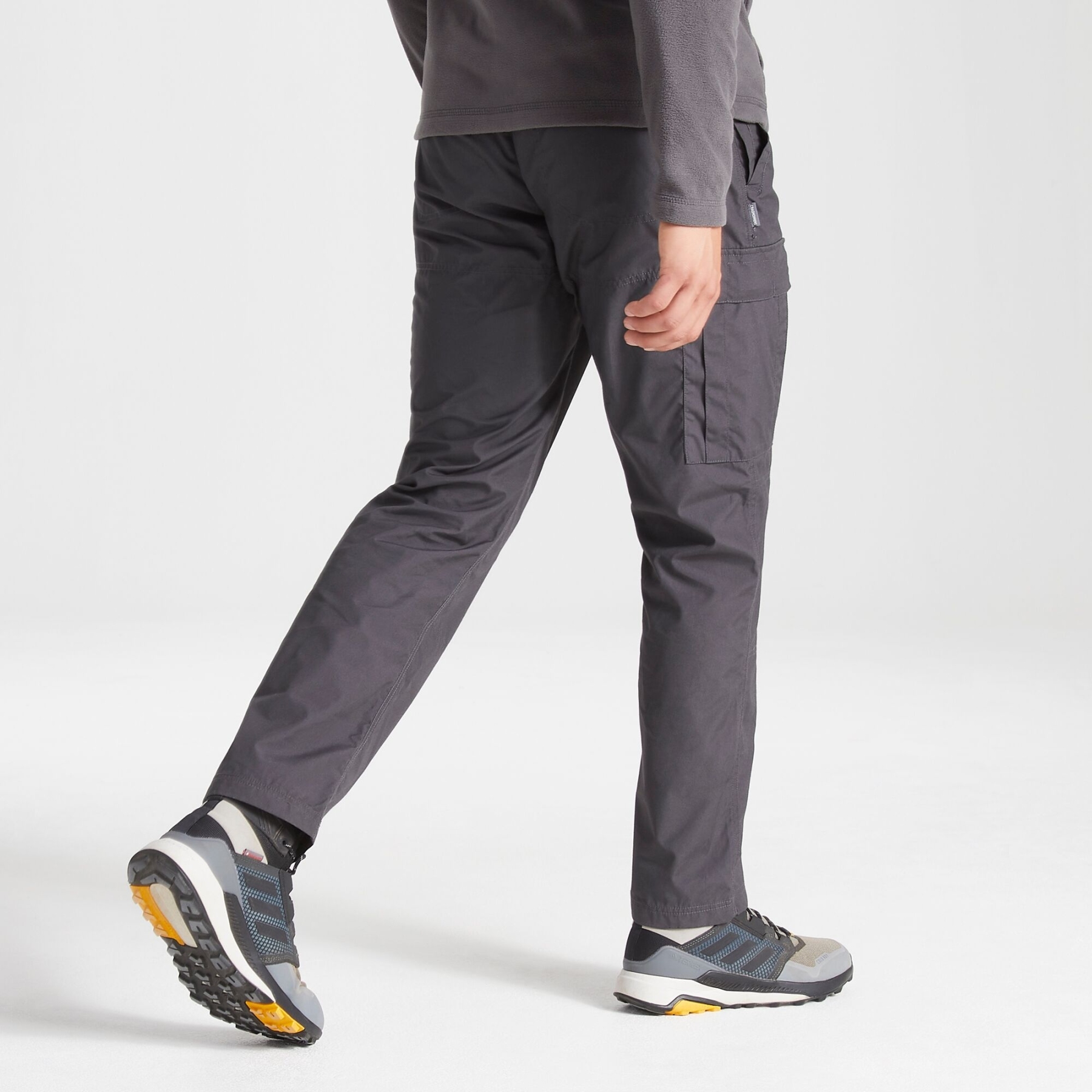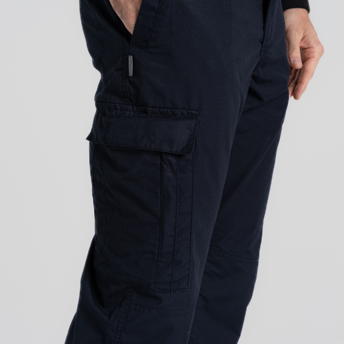 Practical workwear trousers that deliver tried-and-tested performance. The sun-protective peached polyester cotton fabric has a reinforced seat and knee for extra durability. Complete with 9 pockets and belted, part-elasticated waist.