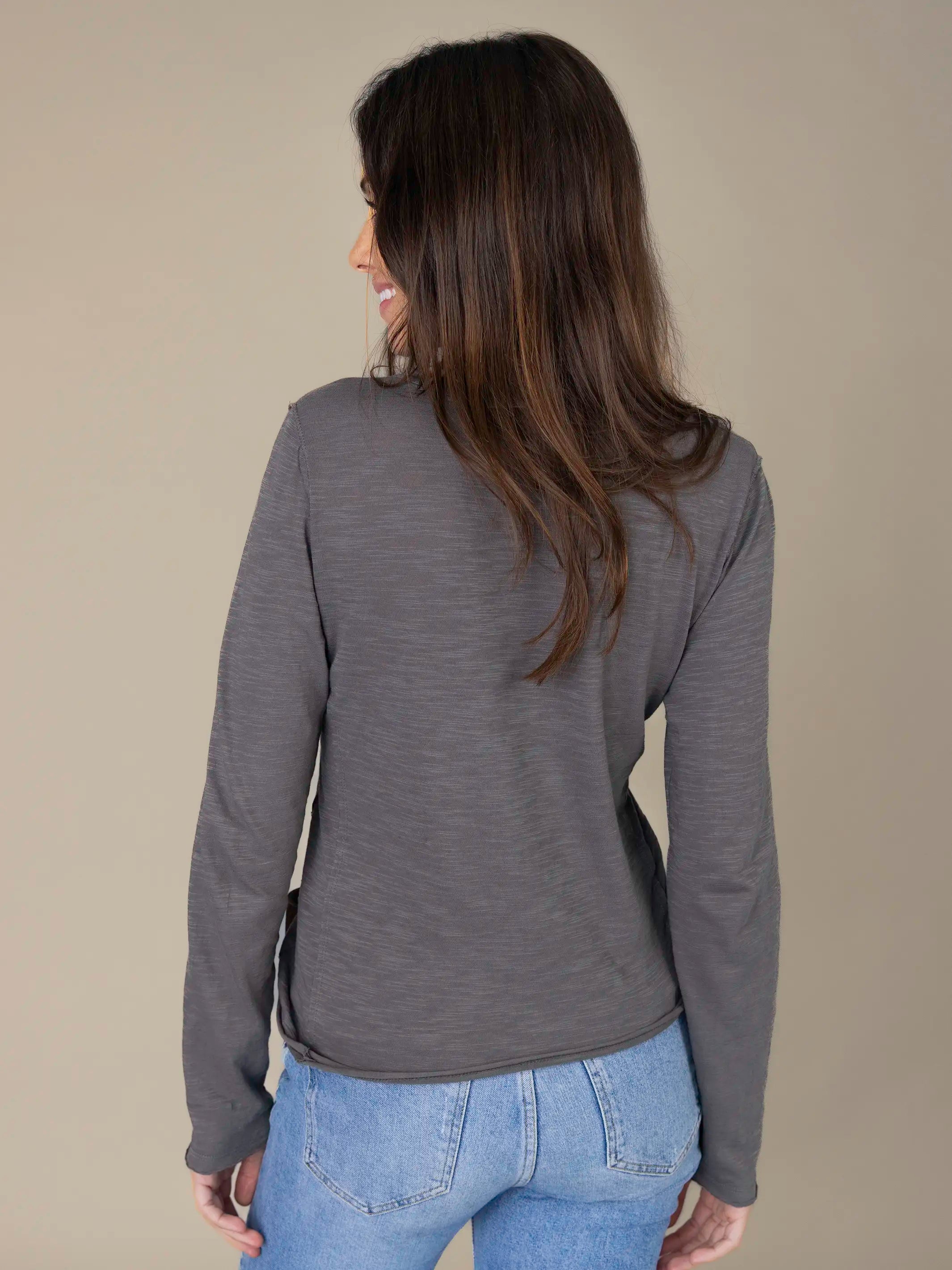 Molly Cotton Long Sleeve Tee Shirt - Charcoal