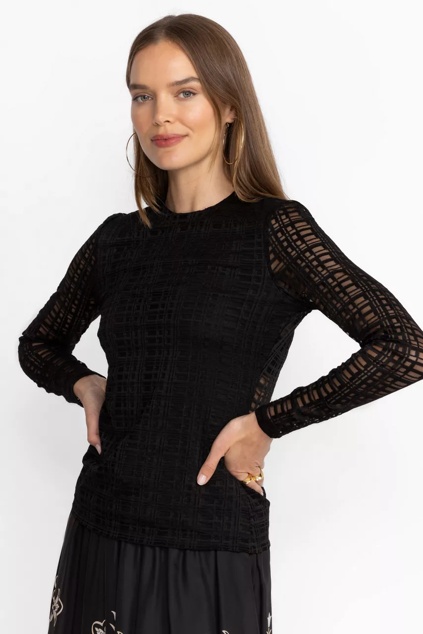Crafted from a lightweight mesh fabric with a hint of stretch, the Natalie Long Sleeve Mesh Tee is an essential layering piece. Featuring a crew neckline and a fitted bodice, this unique patterned tee adds visual interest to your casual looks. Layer over a lightweight tank, or under a graphic tee for a retro-inspired look.
