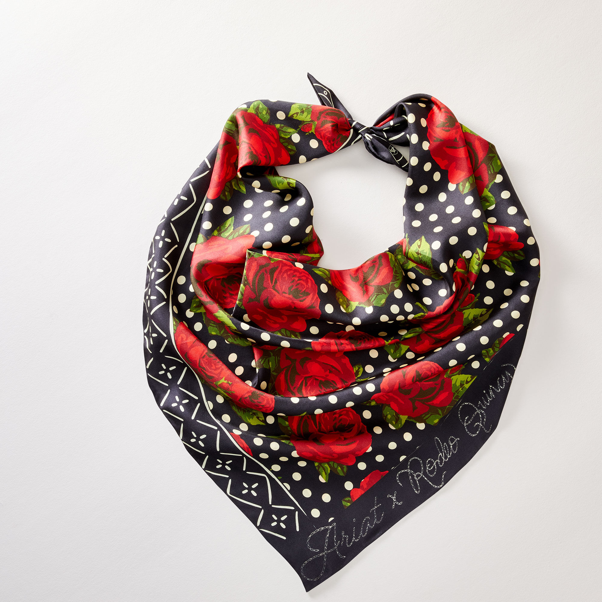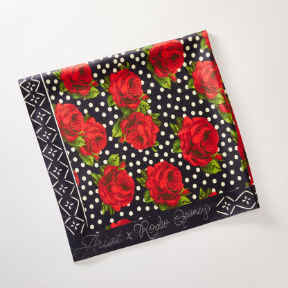 Part of our limited-edition collection with Rodeo Quincy, this wild rag is made for fun-loving cowgirls. Crafted from luxurious 100% silk with two bold prints to choose from, it makes a statement however you wear it (as a headscarf, in your ponytail, around your neck).