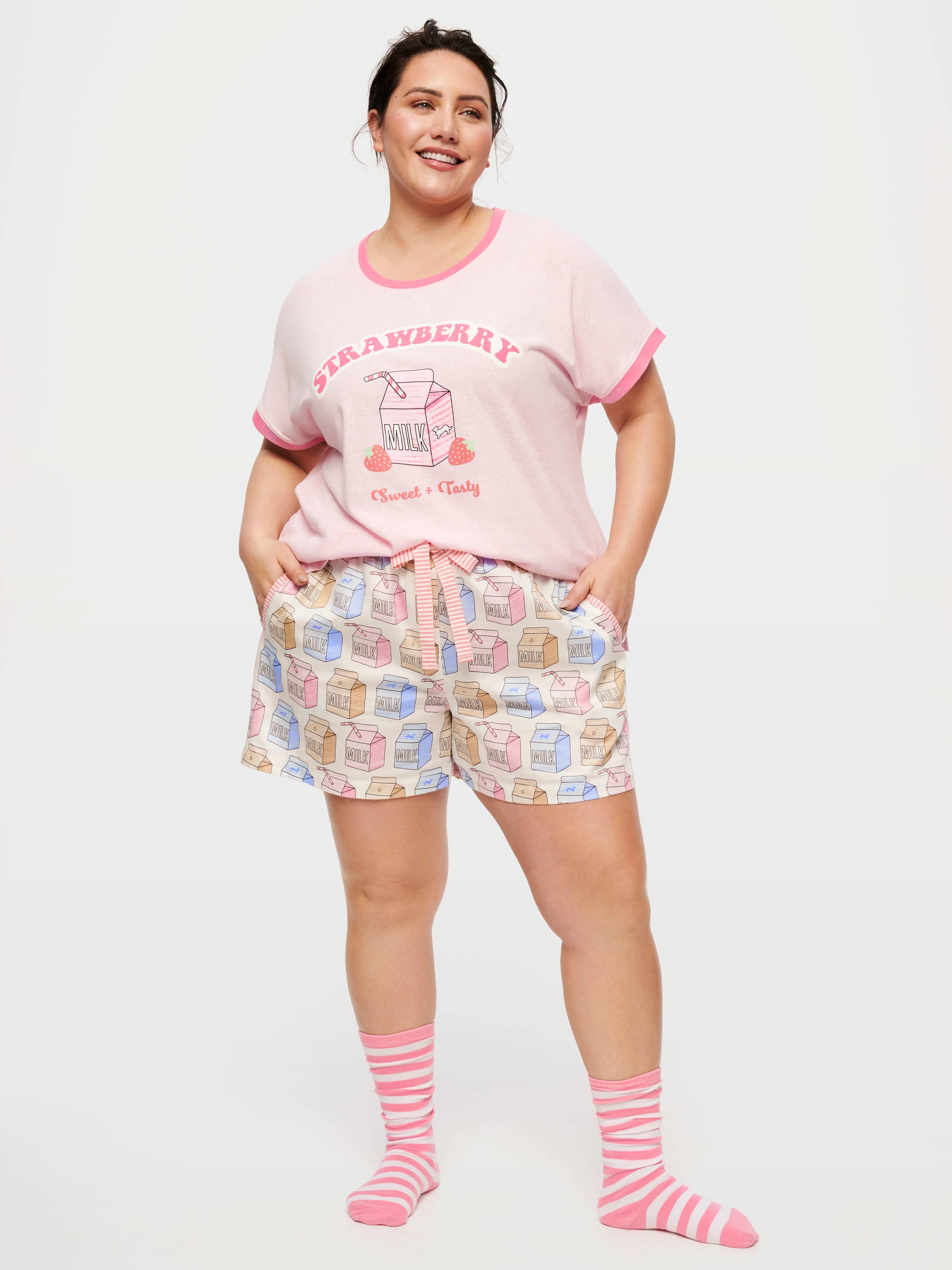 This legen-dairy pair of PJ shorts is perfect for those who love a glass of milk after a long day. In a longer length, this one pairs perfectly with the matching tee. Now the only question is, Strawberry or Chocolate?