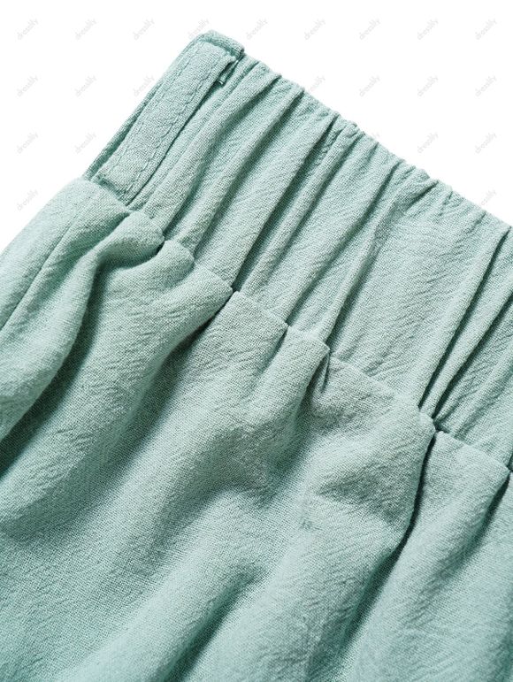 Style: Casual,Fashion Occasions: Daily Fit Type: Regular Length: Normal Closure Type: Elastic Waist Fabric Stretch: No Stretch Pattern Type: Solid Color Embellishment: Mock Button Waist Type: High Waist With Belt: Yes Season: Spring Weight: 0.2650kg Package Contents: 1 x Pants 1 x Belt