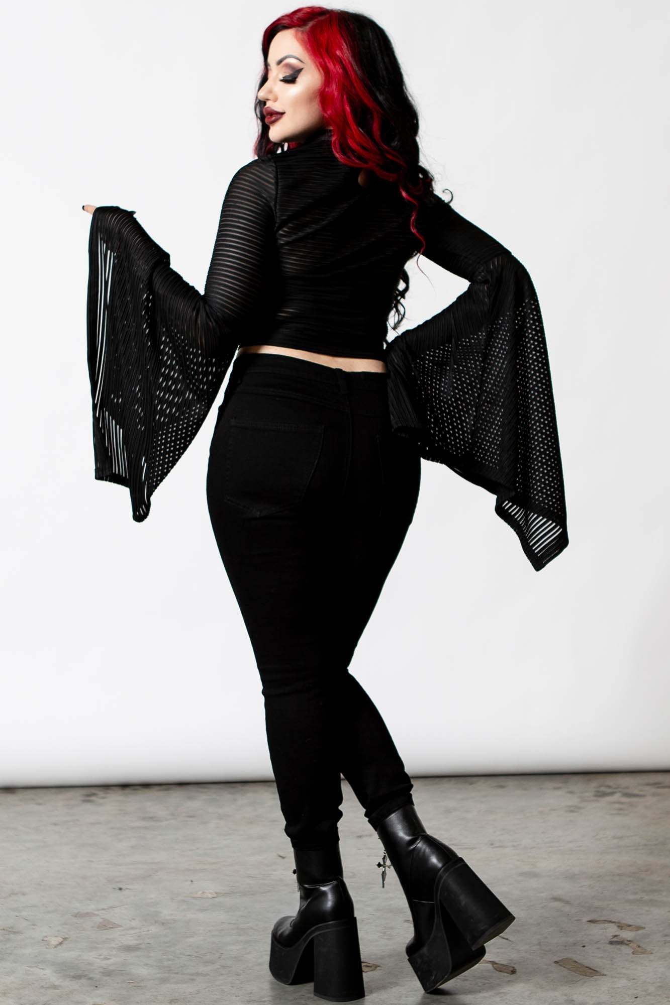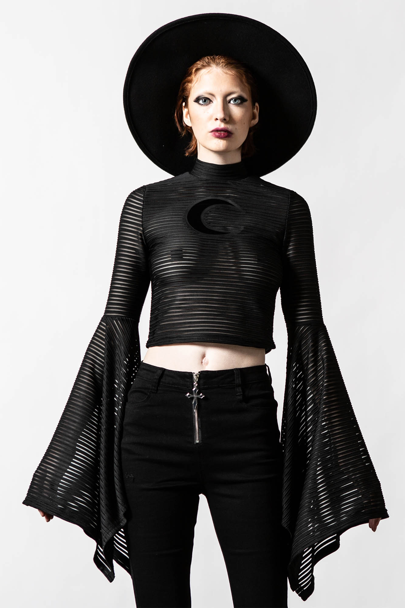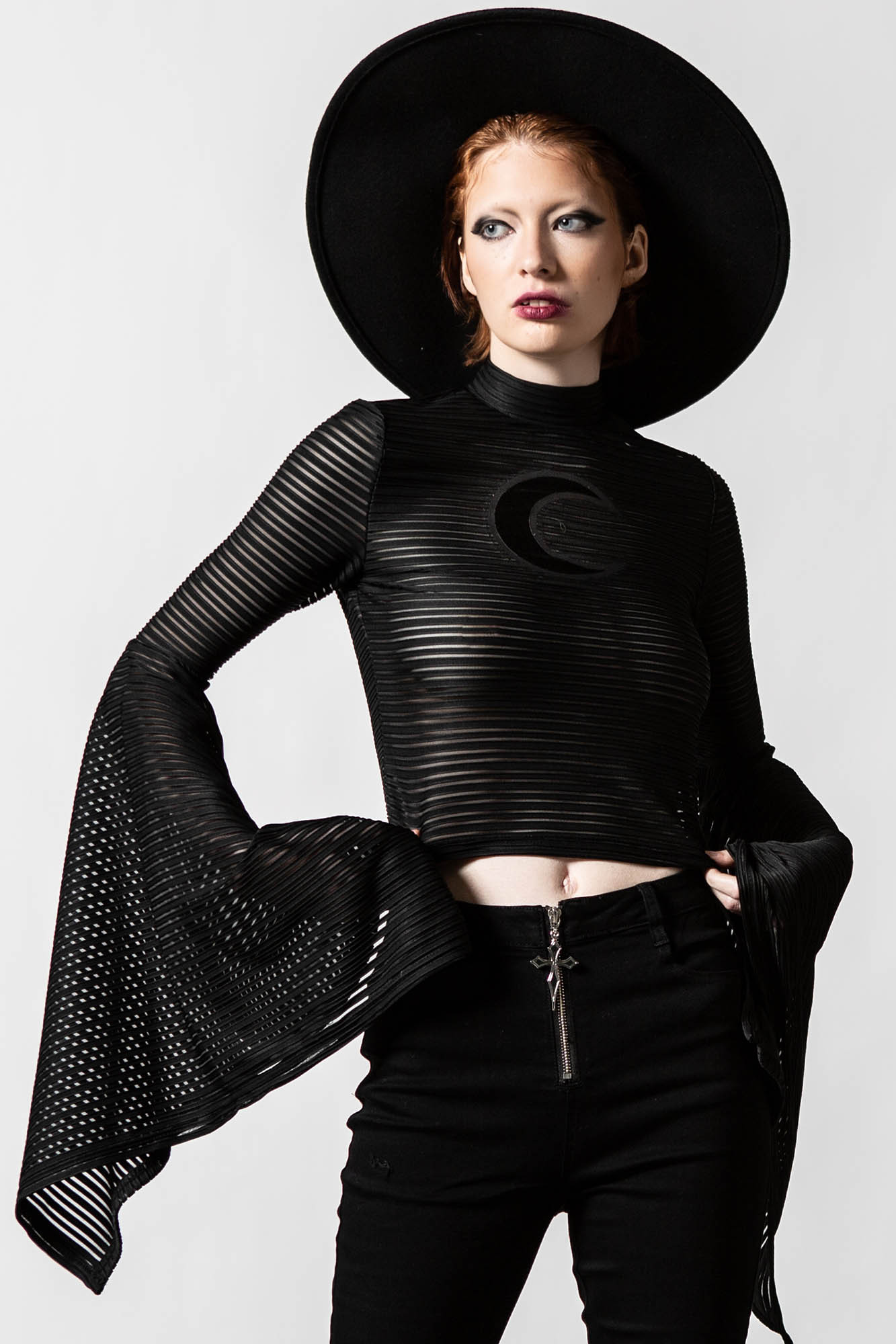 Look cute as hell in the 'Phases' striped top; conjured using a super-soft fabric for a flattering yet comfortable fit. Features a high neckline, statement flare sleeves and crop style - no detail has been spared! An essential piece - easy to wear and goes with anything!
